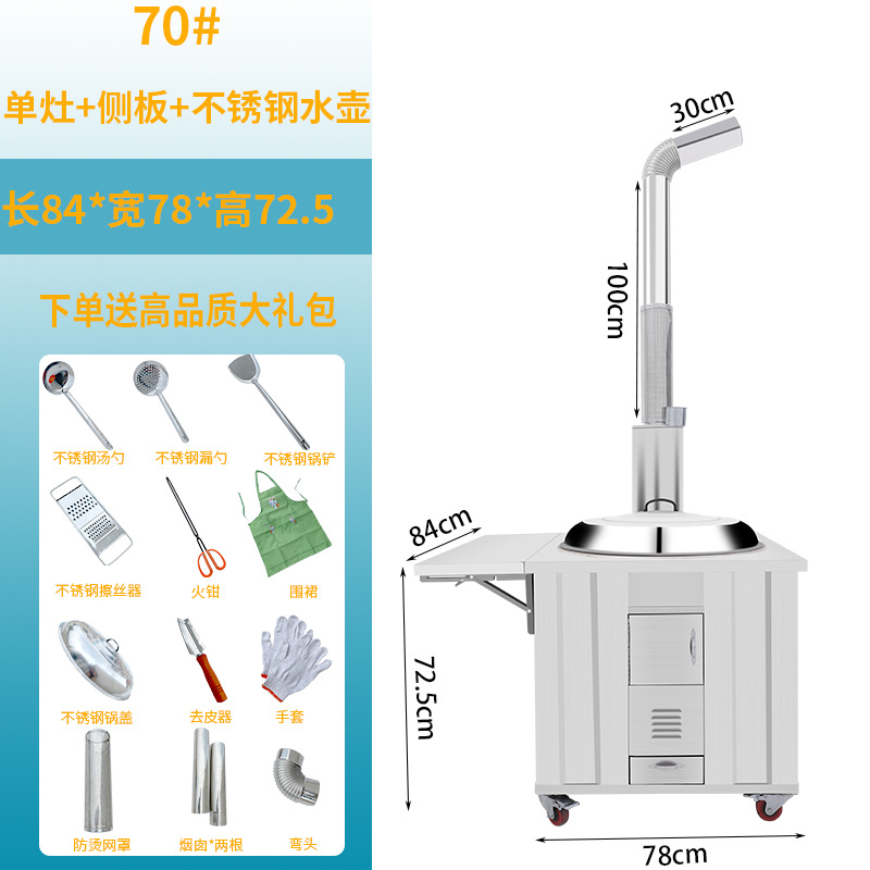 stainless steel thickened 70 single burner stove + side plate + stainless steel kettle