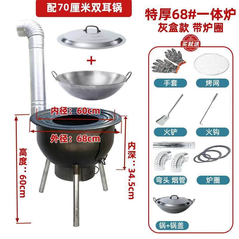 extra thick 68cm + 70cm pot + cover + ring-hu-factory direct sales-integrated firewood stove
