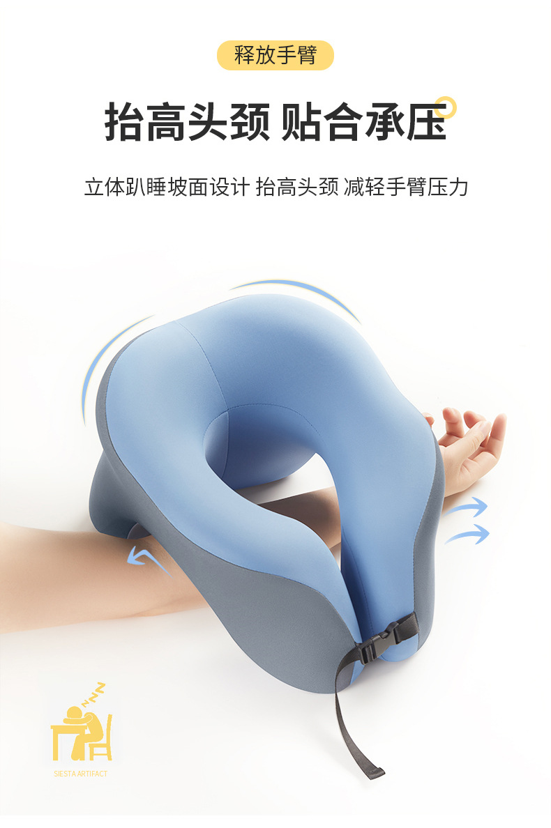 four seasons magnetic bamboo charcoal cloth memory foam u-shaped afternoon nap pillow [cerulean blue]]