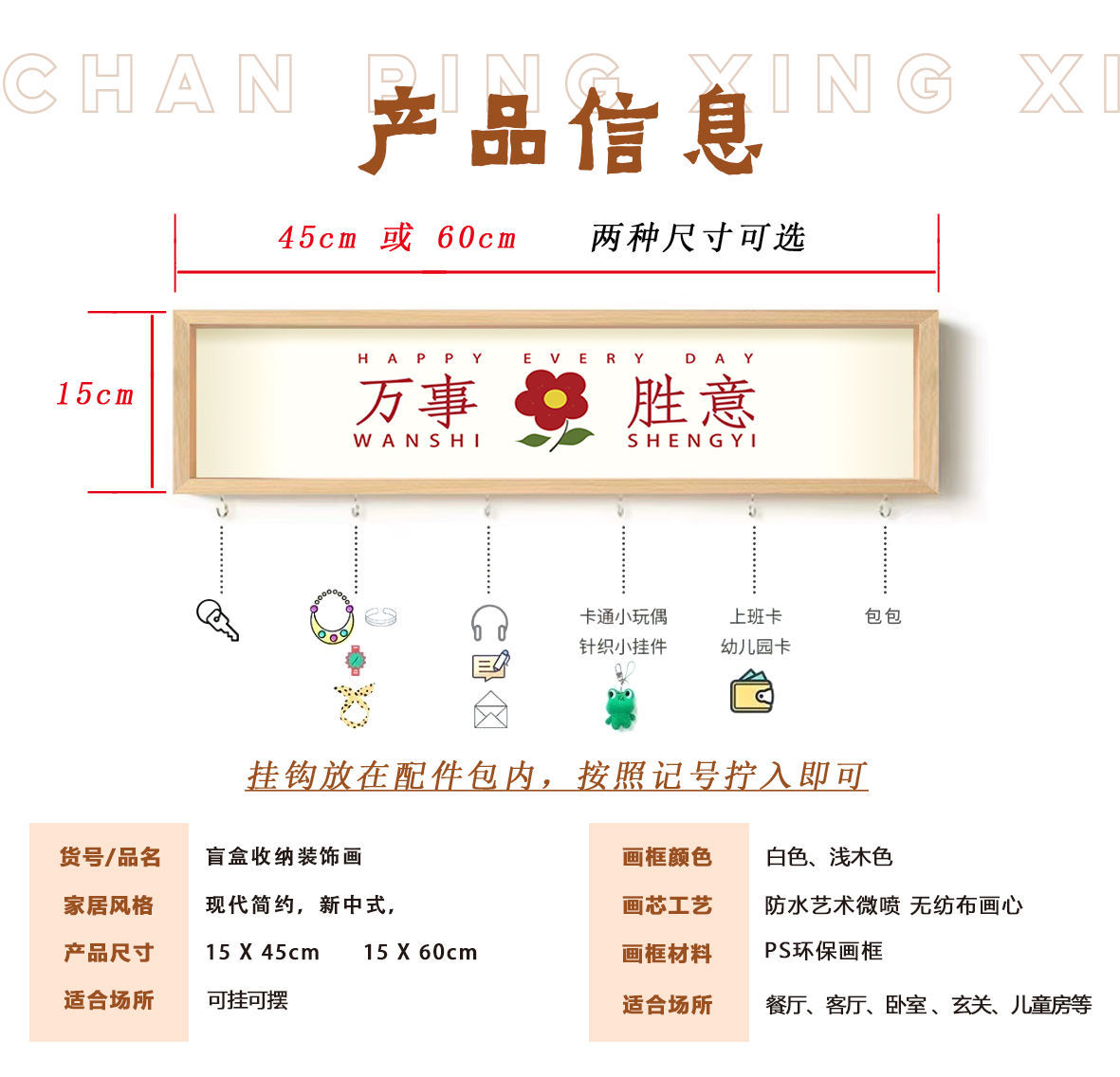 | 15 * 45cm light wood frame | CN¥ 34.2 | 100 pair available |