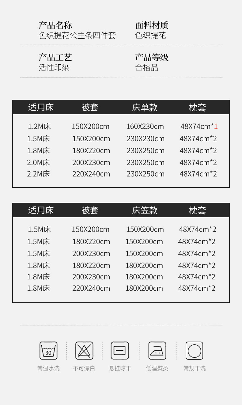 | 1.5m fitted sheet four-piece set (quilt cover 200 x230cm) | CN¥ 103.2 | 88884 set available |