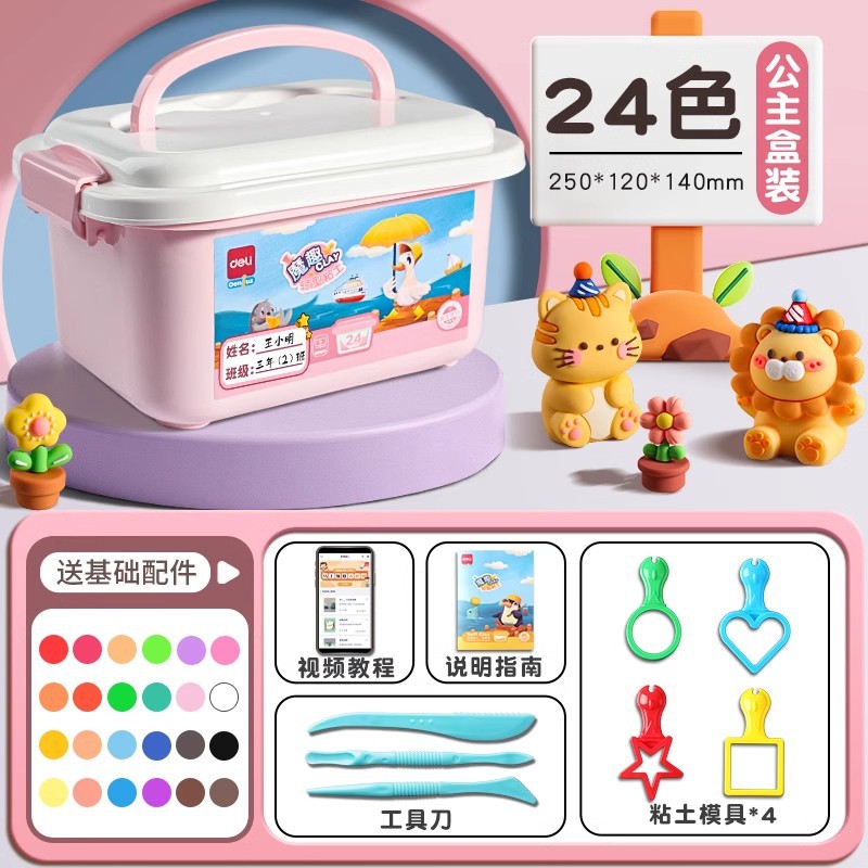 [princess clay 15 g/box] 24-color portable box + name tape/delivery tool for free + tutorial