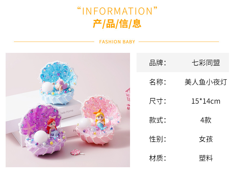 pink mermaid small night lamp material package