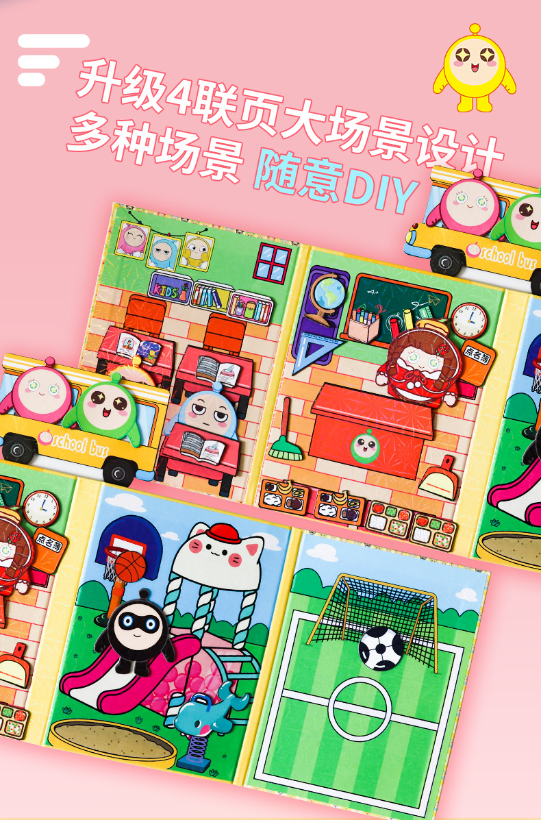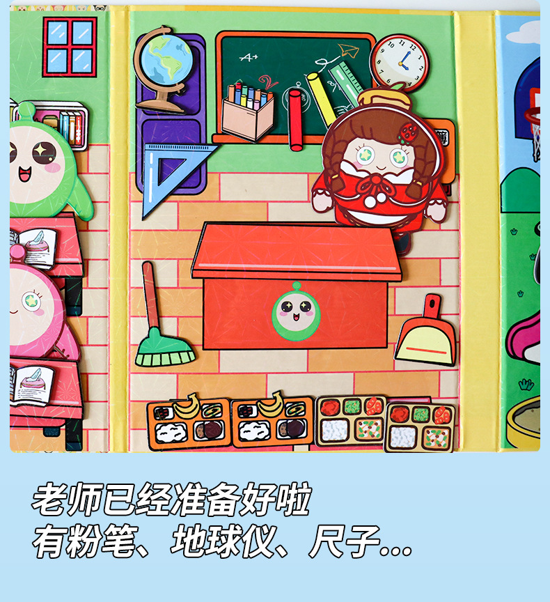 [magnetic style 4 books] seaside vacation + bus school + dressing party + dessert house