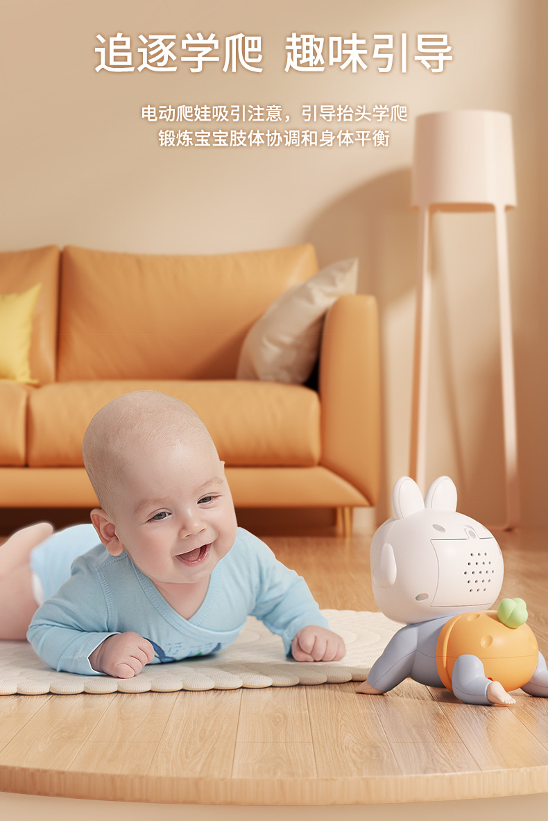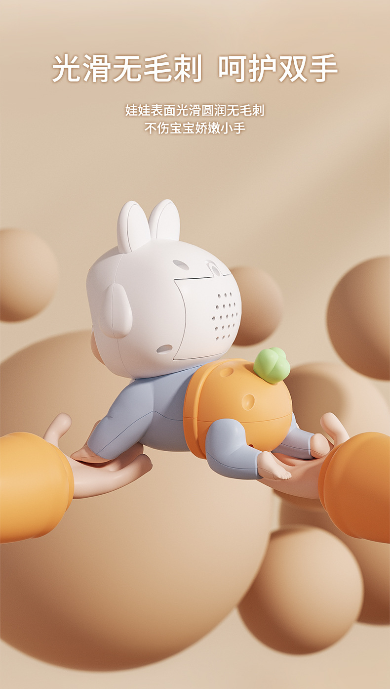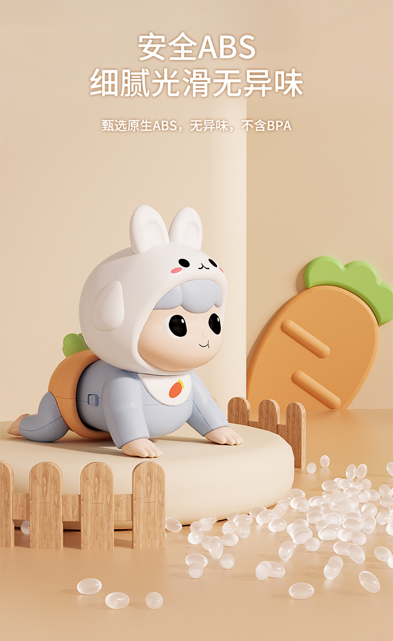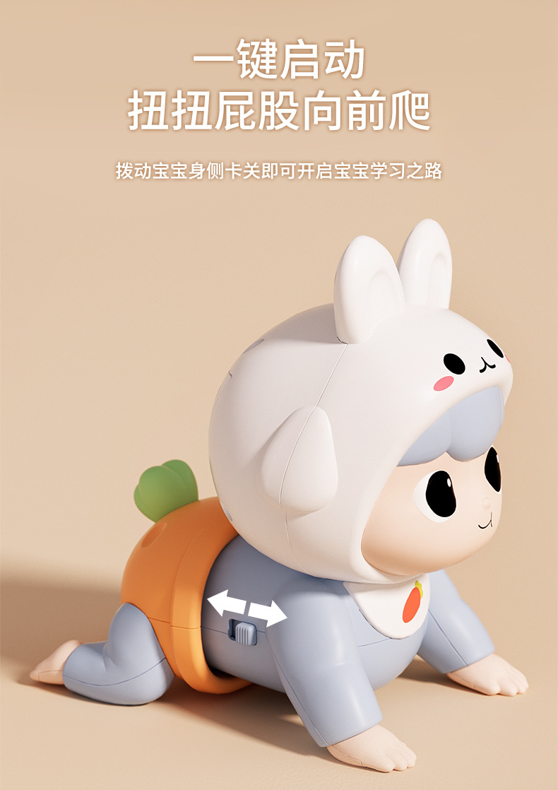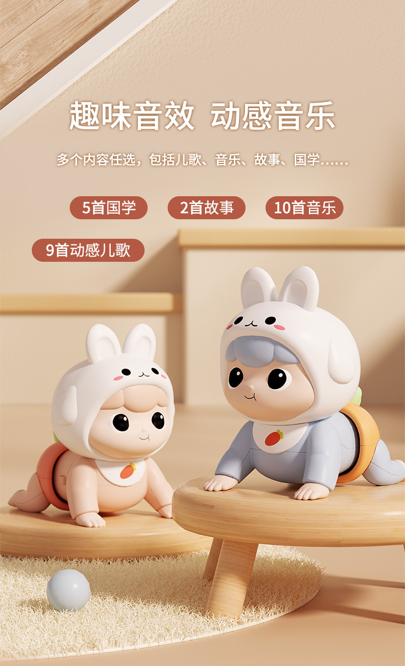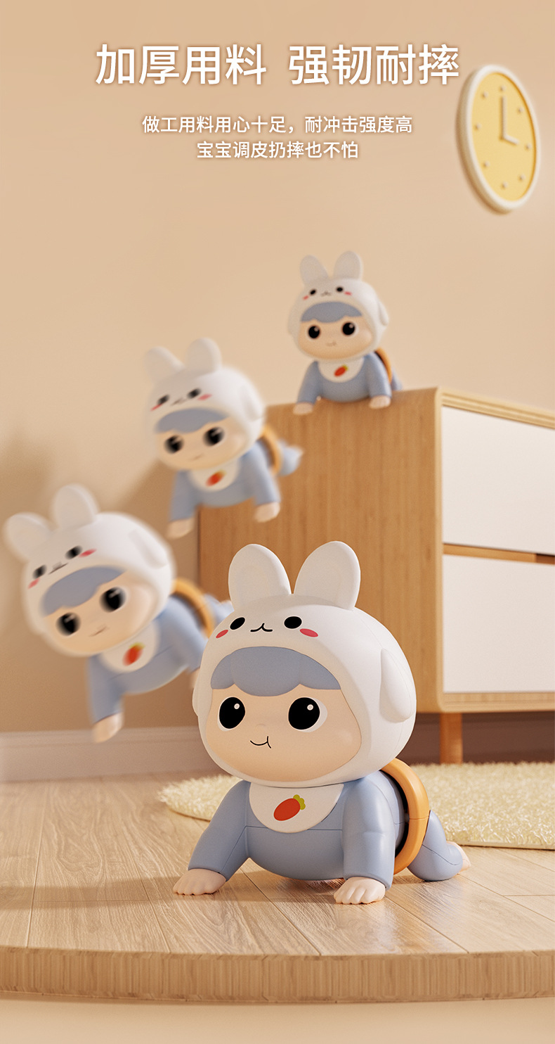 adorable rabbit crawling doll [blue] rechargeable + rattle 6-piece set