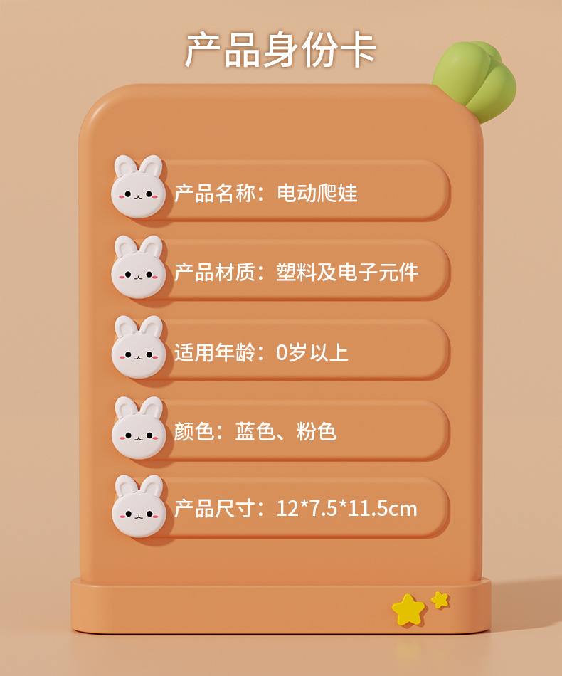 adorable rabbit crawling doll [blue] rechargeable + pulling radishes