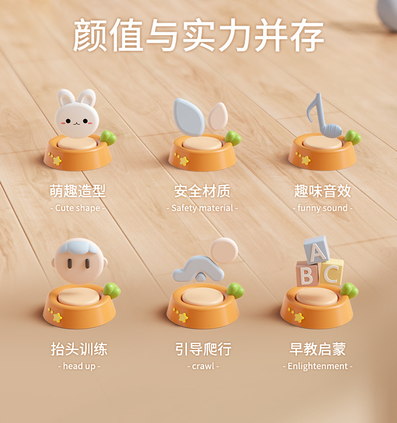 adorable rabbit crawling doll [pink] rechargeable + rattle 6-piece set