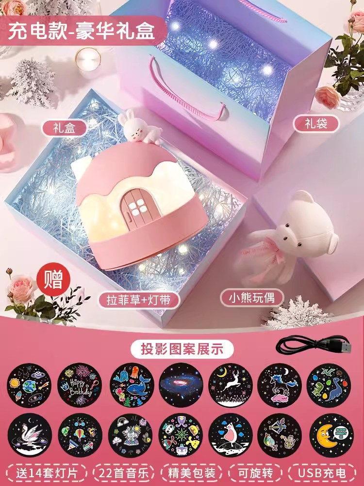 [qixi recommend gift packaging] snow house sleeping rabbit [rechargeable] 22 music +14 sets picture