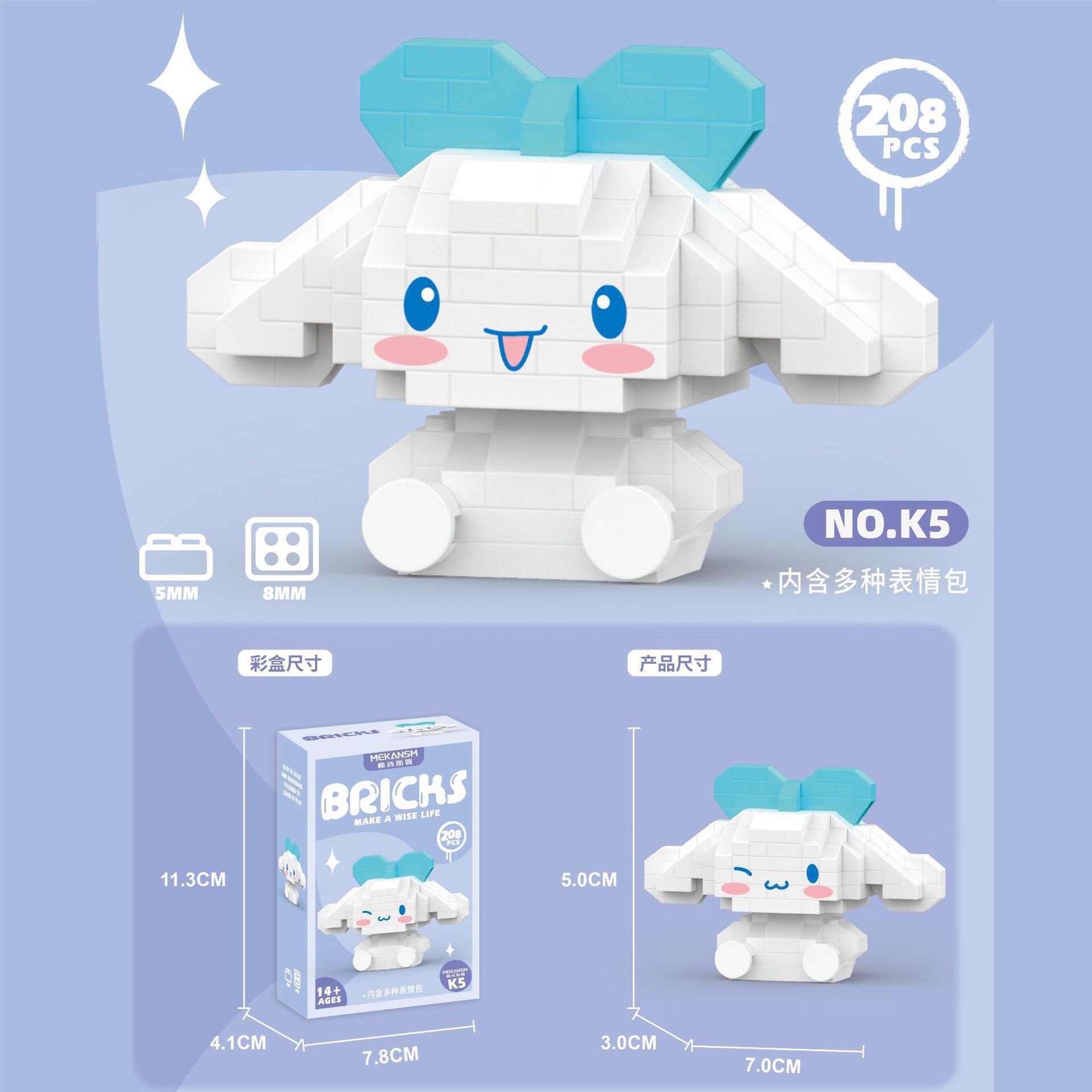 k8-clow rabbit 208pcs [color box package]]