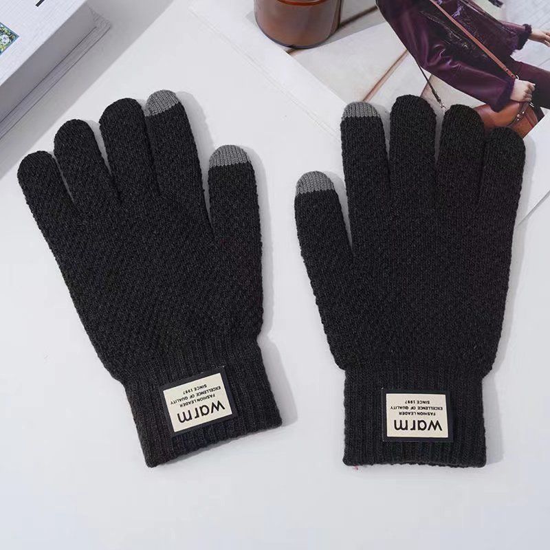 pineapple pattern warm gloves-black