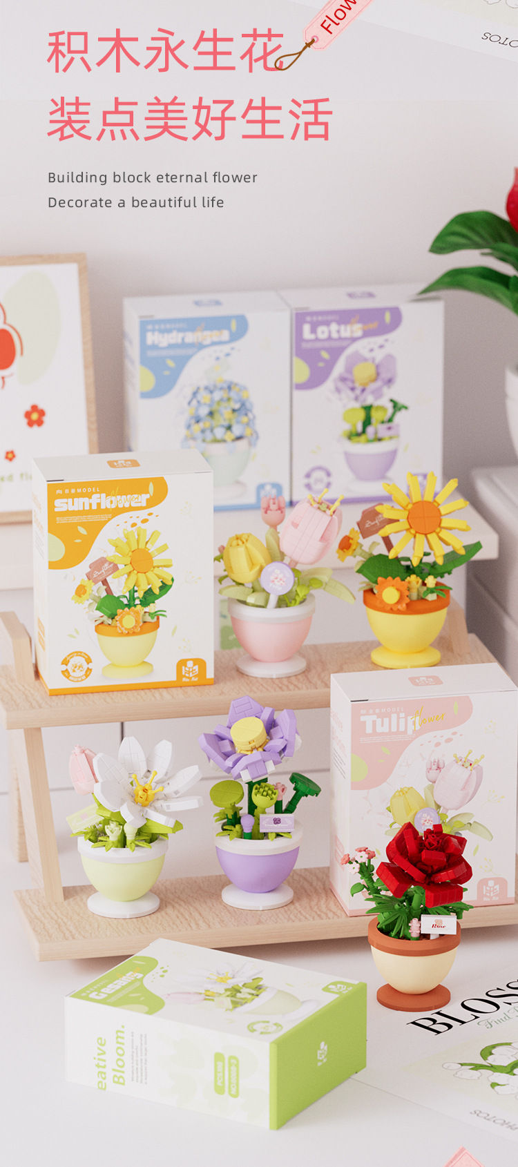6 flowers in one set