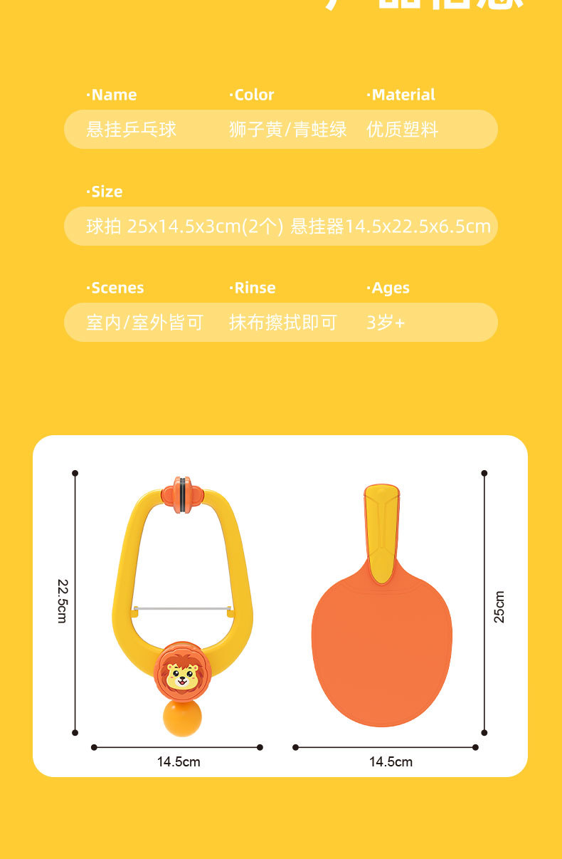 color box lion yellow [3 balls and two rackets] + hanger