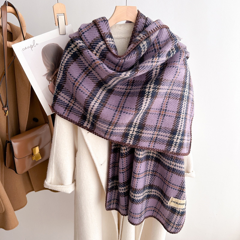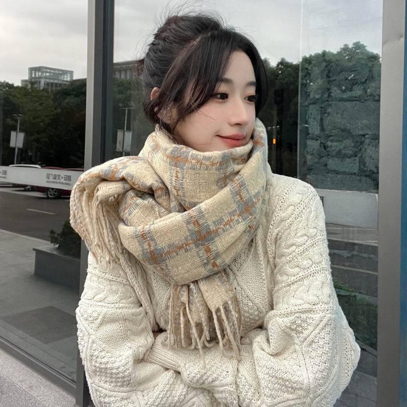 patchwork plaid scarf coffee rice