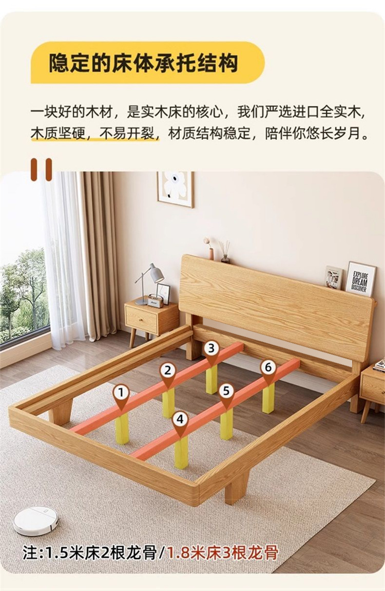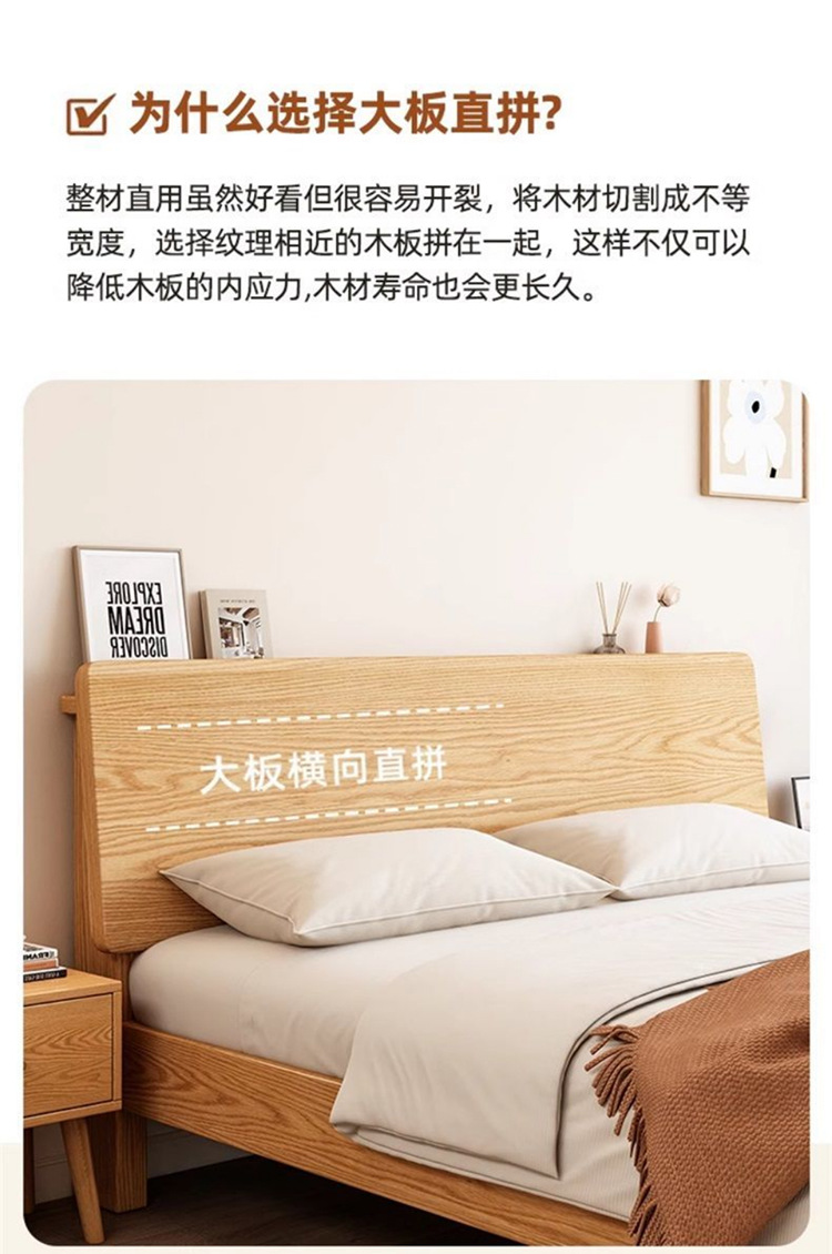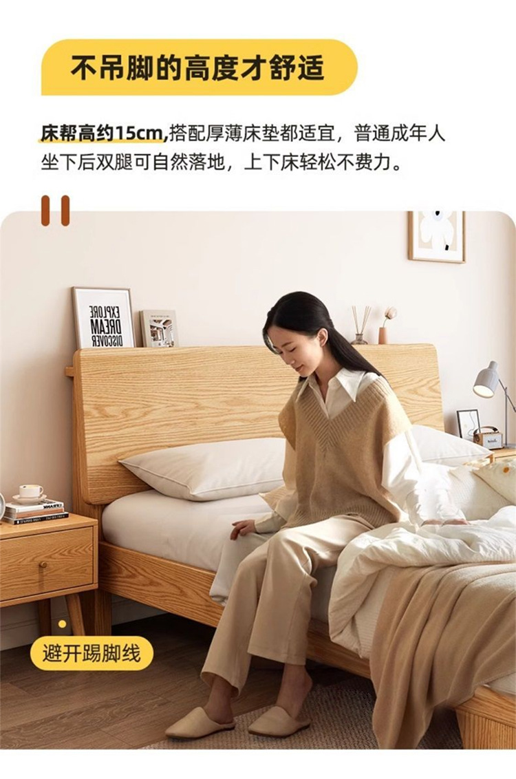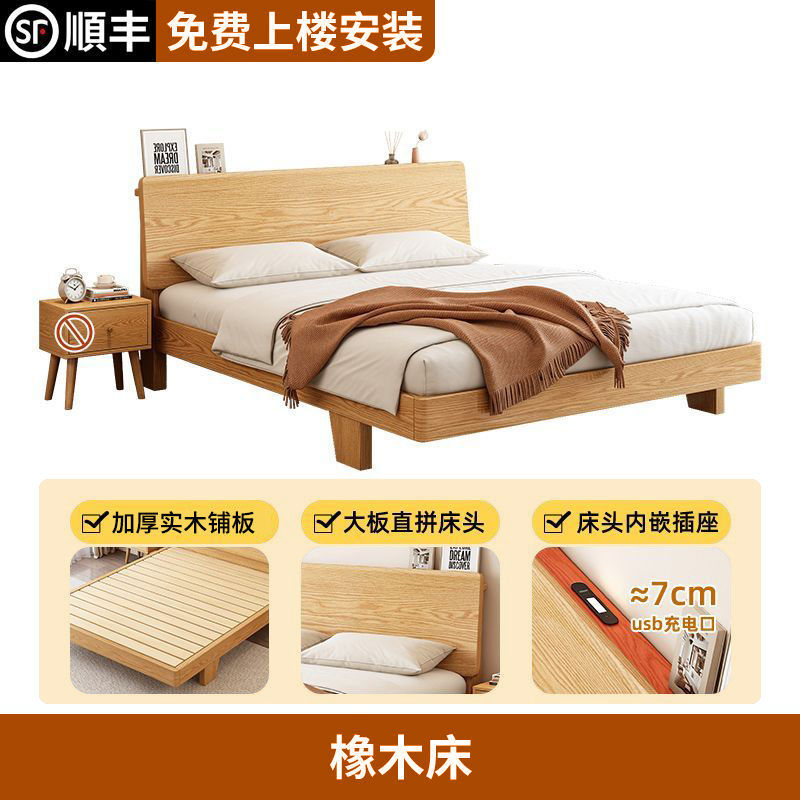 upstairs + thickened all solid wood large board straight fit oak bed, 1500mm * 2000mm