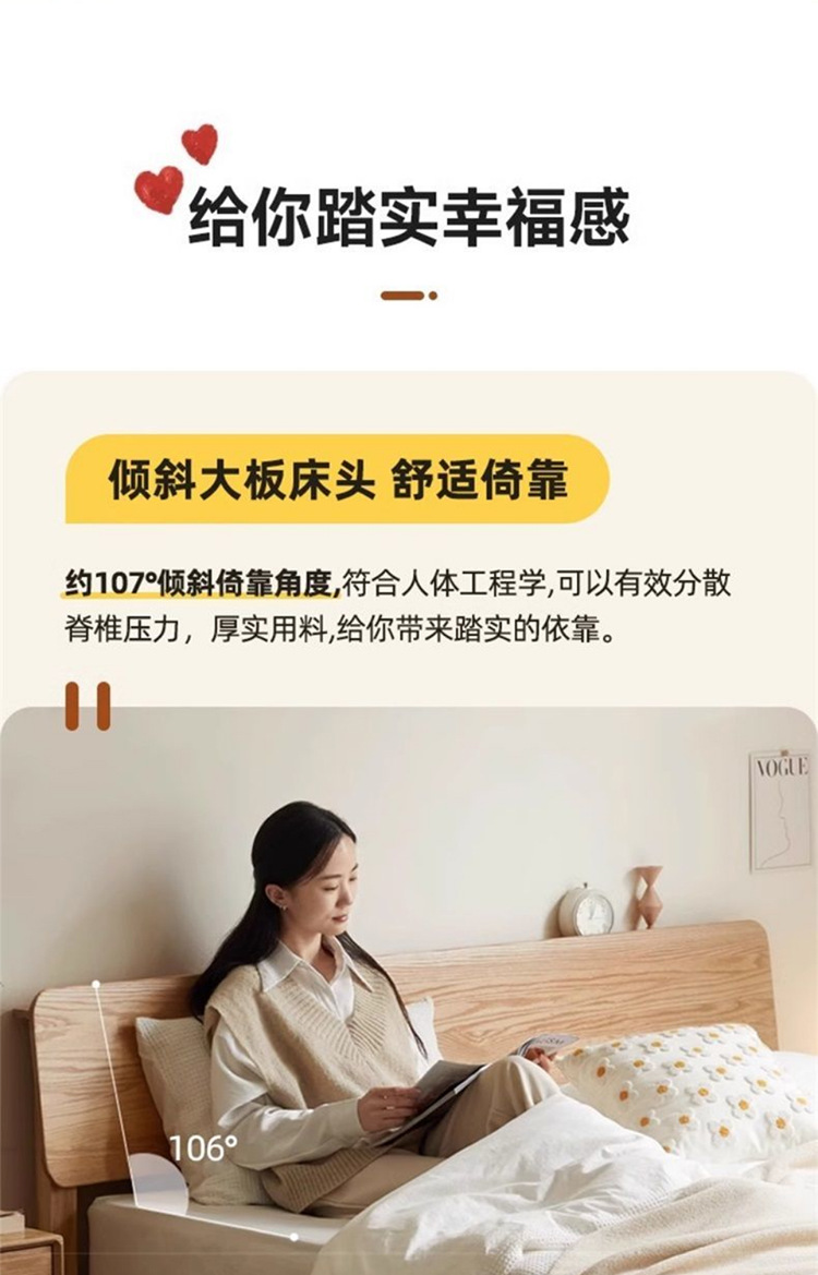 upstairs + thickened oak bed * bedside table 2, 1800mm * 2000mm