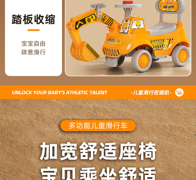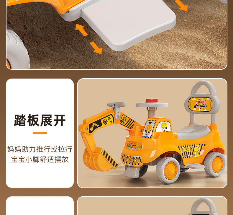 yellow super large + music light + push handle + pedal + luxury gift-[high strength load-upgrade front and rear turning device]]