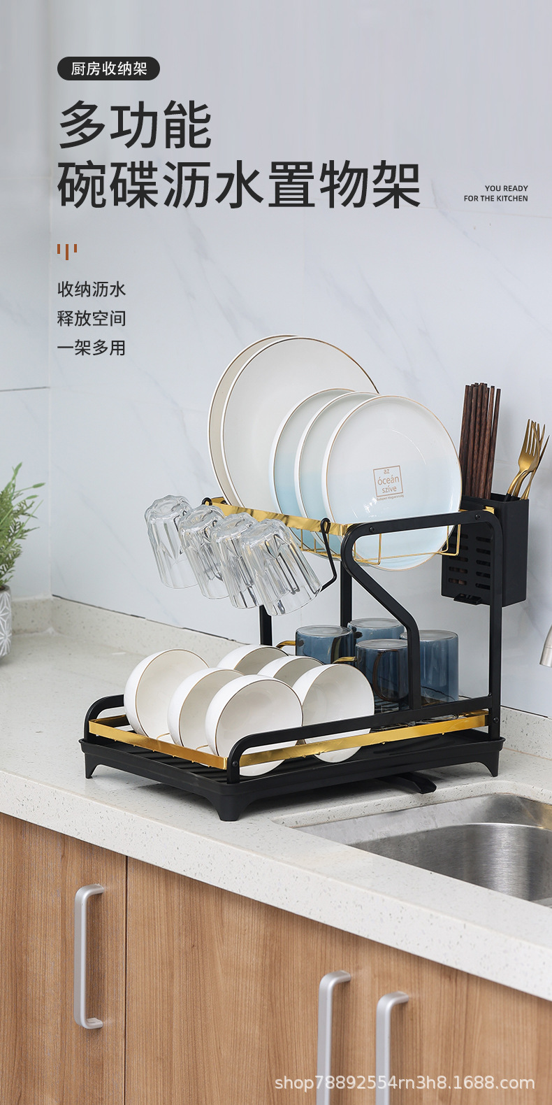 cross-border amazon kitchen rack dish rack multi-functional storage draining bowl rack