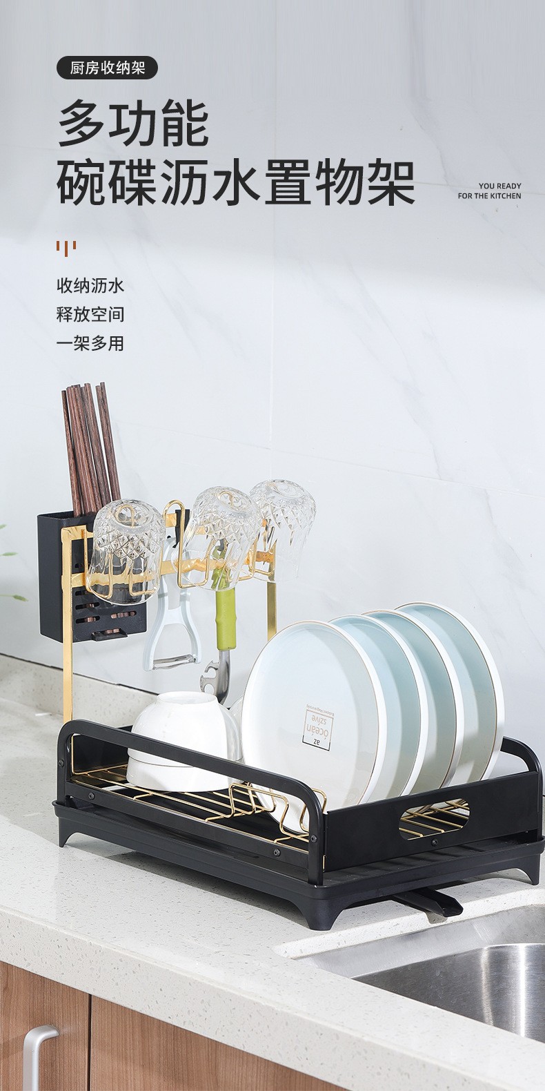 cross-border kitchen storage drain rack scullery bowl dish cup holder knife fork chopstick storage rack sink side