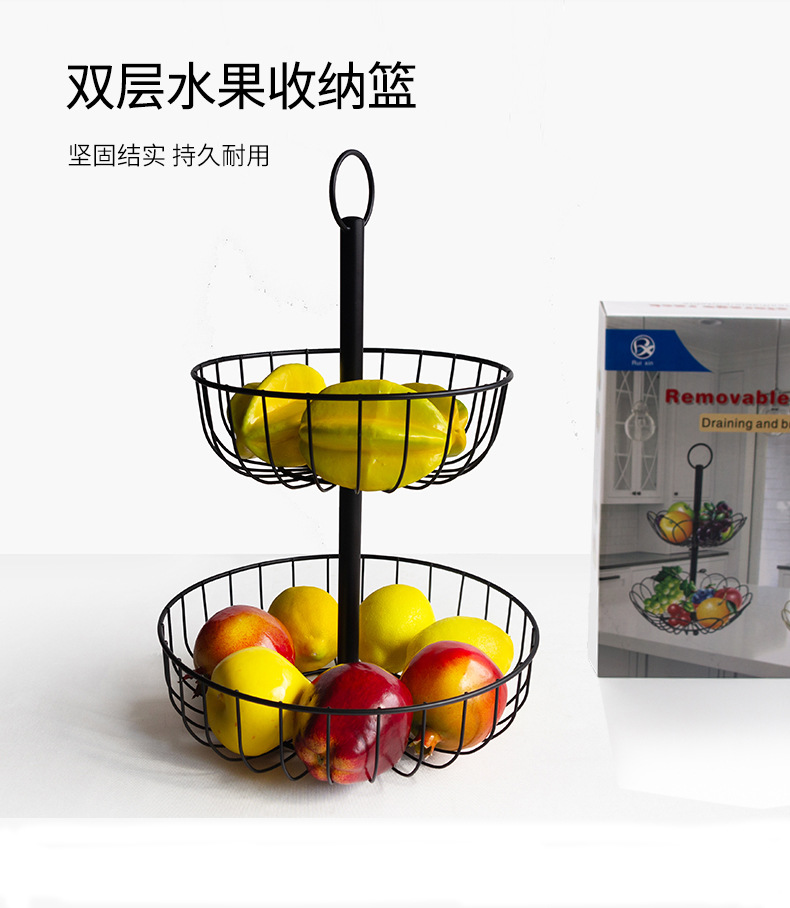 cross-border direct sales iron hollow double-layer fruit basket creative fruit plate living room fruit basket coffee table top storage rack
