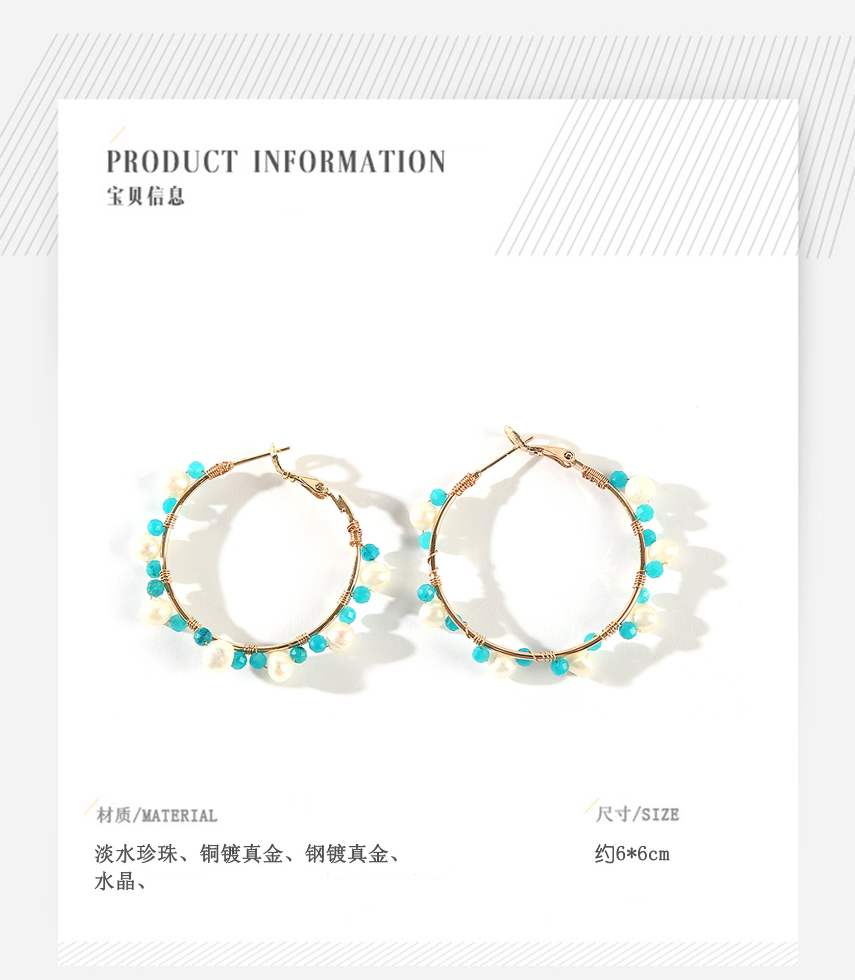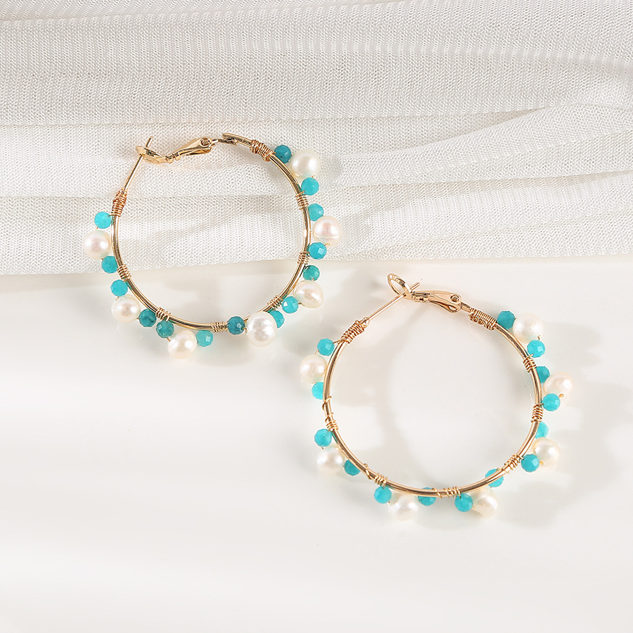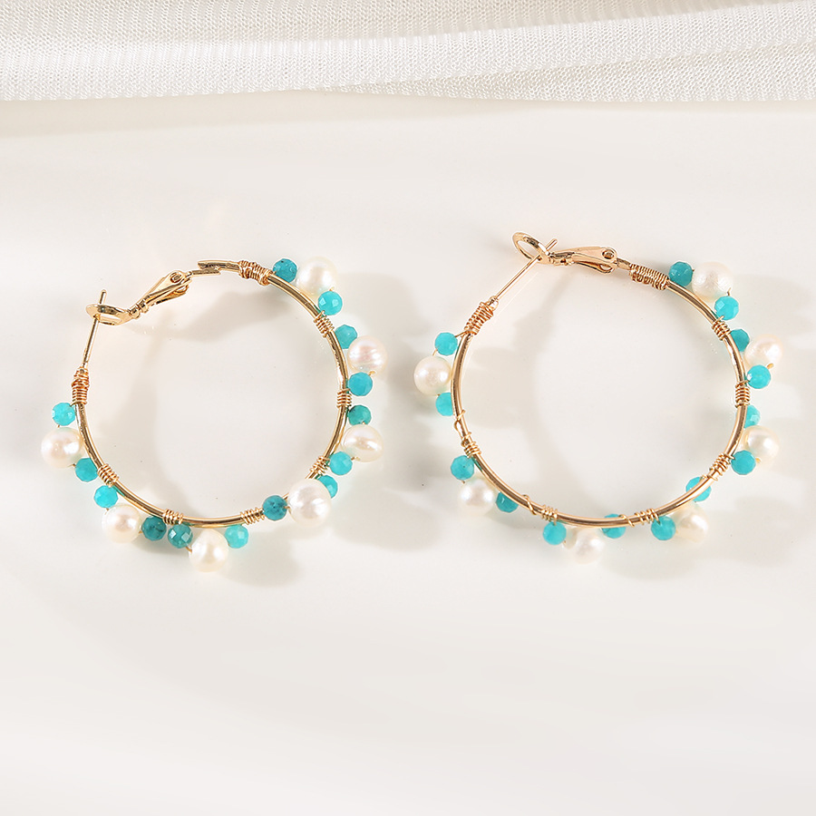 blue crystal winding pearl earrings