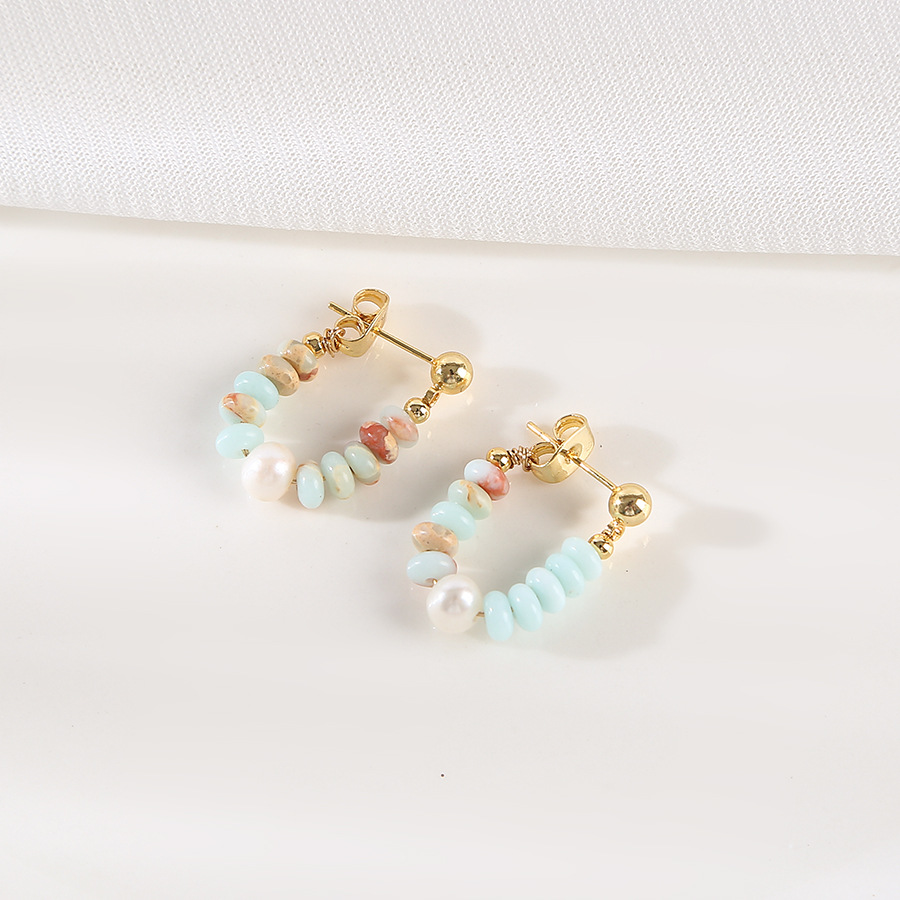 shoushan stone pearl stud earrings