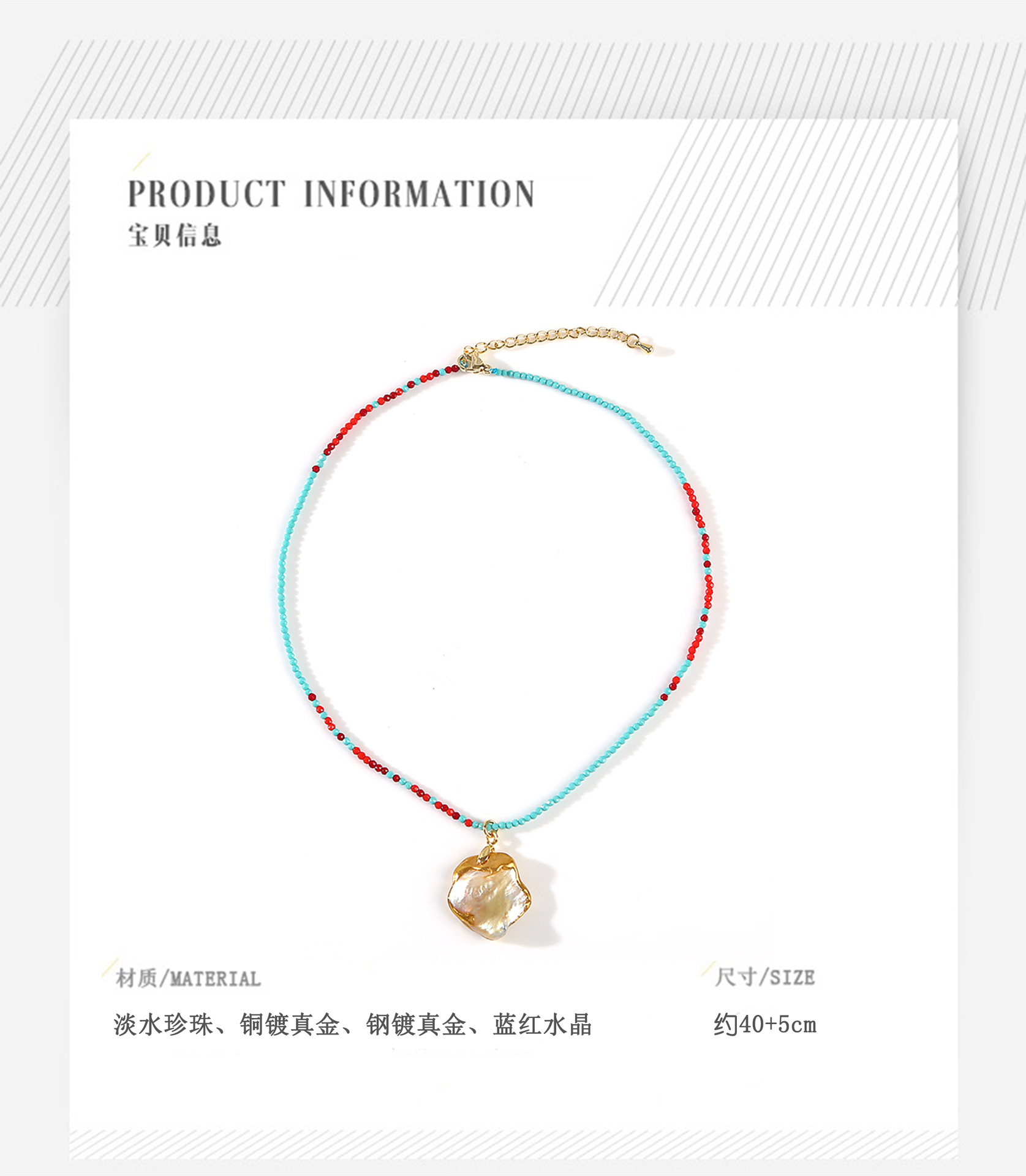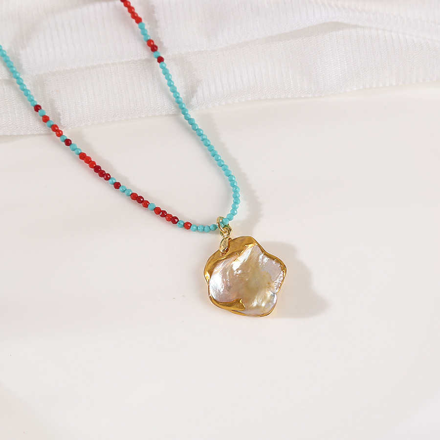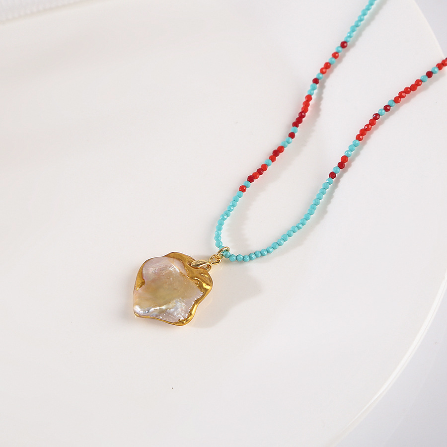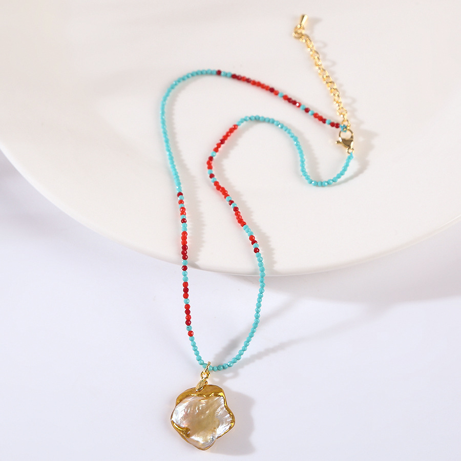 blue red crystal stroke baroque pendant pearl necklace