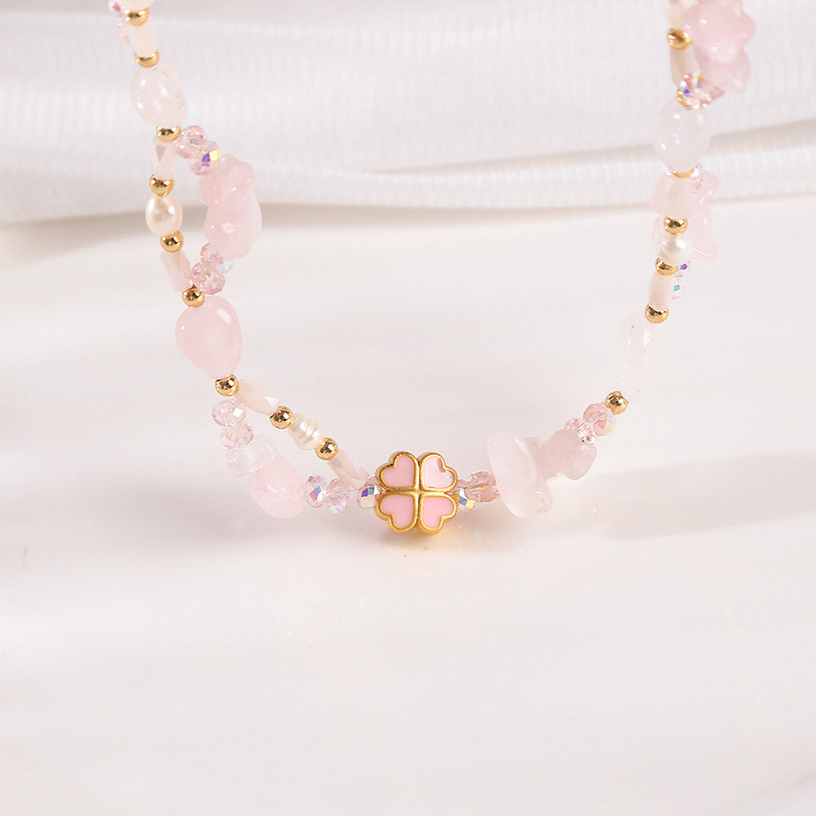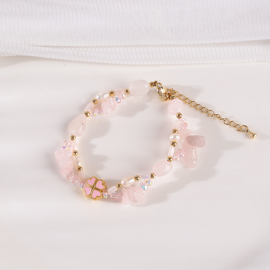 four-leaf clover pink crystal woven pearl bracelet