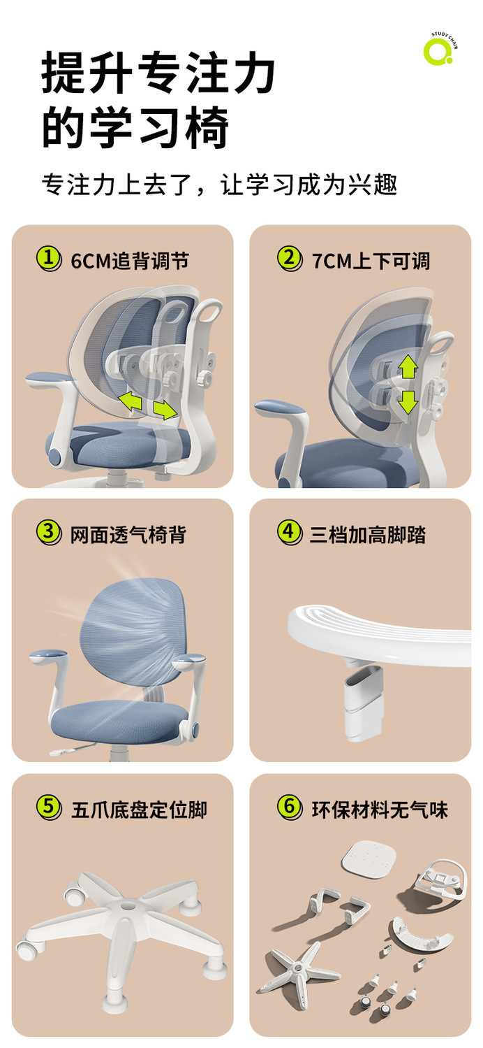 xueba powder non-rotating armrest/child care spike feet/lifting pedal