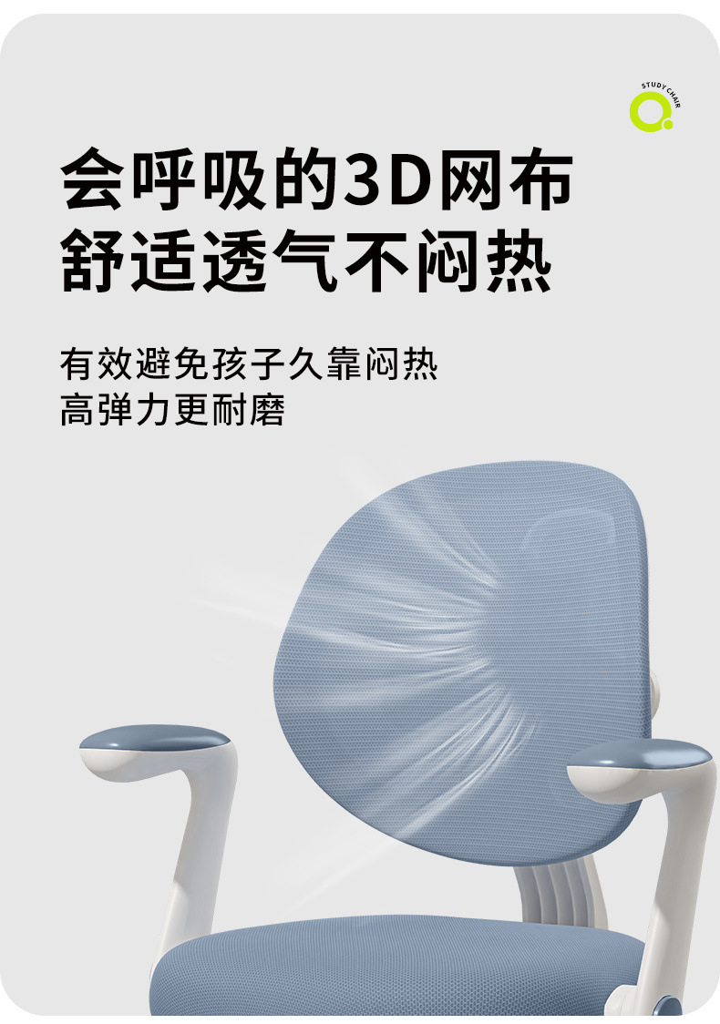 progressive blue non-rotating armrest/child care spike feet/breathable mesh