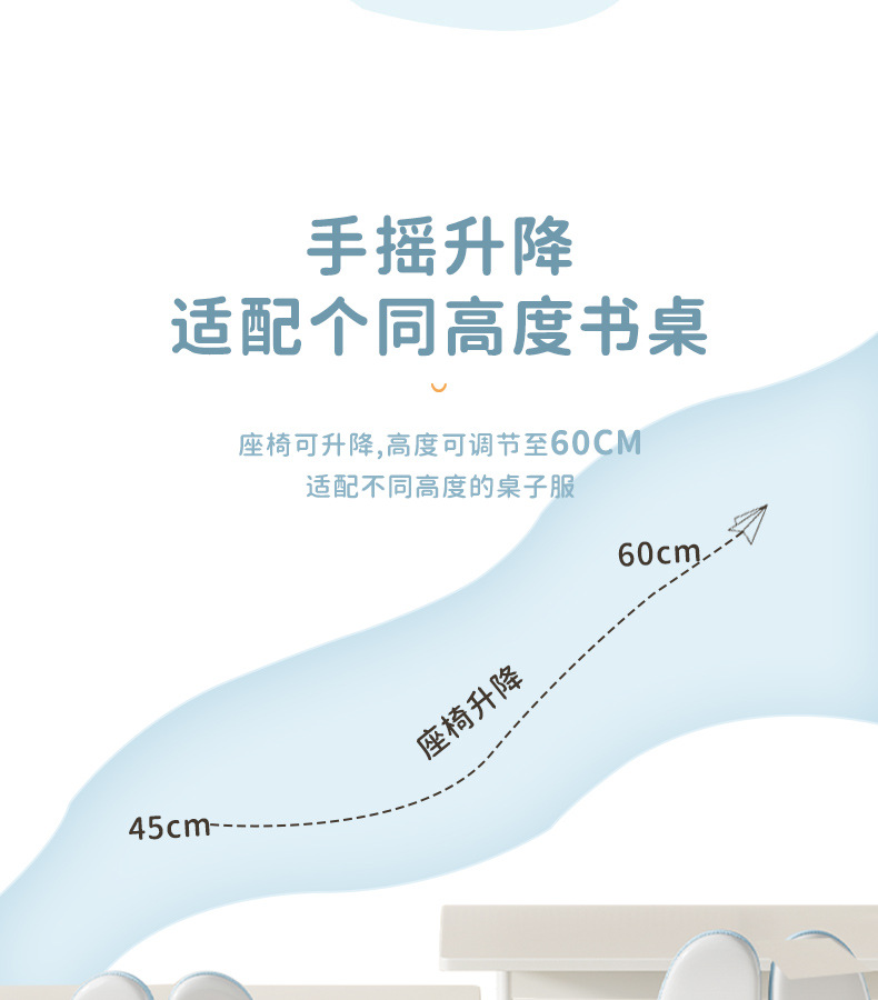 heightening installation-free armrest manual lifting-sky blue/5-dimensional back chasing/plus-sized seat surface