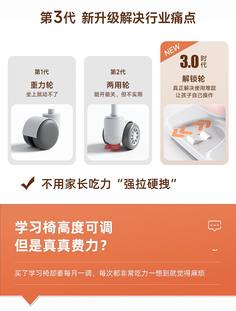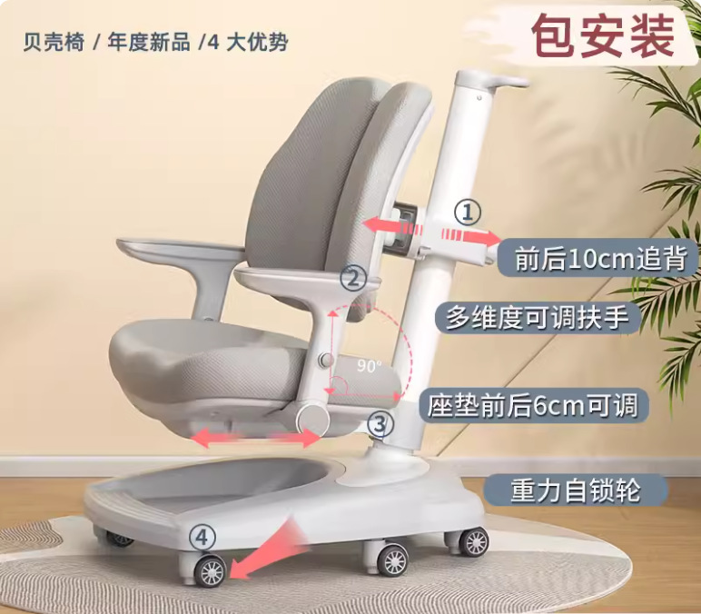 intellectual chair | one-click unlock wheel/front and rear back/4-block pedal powder
