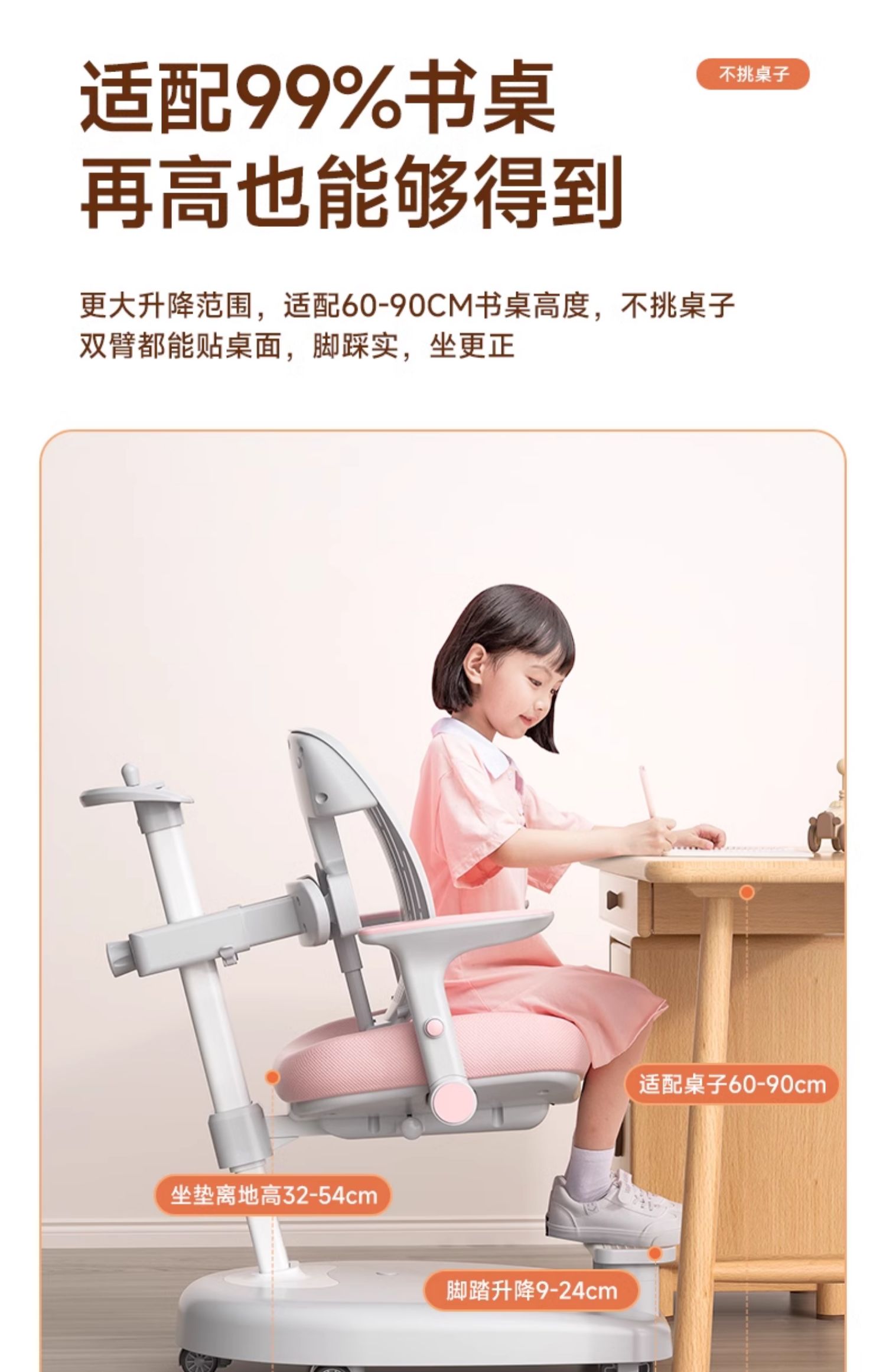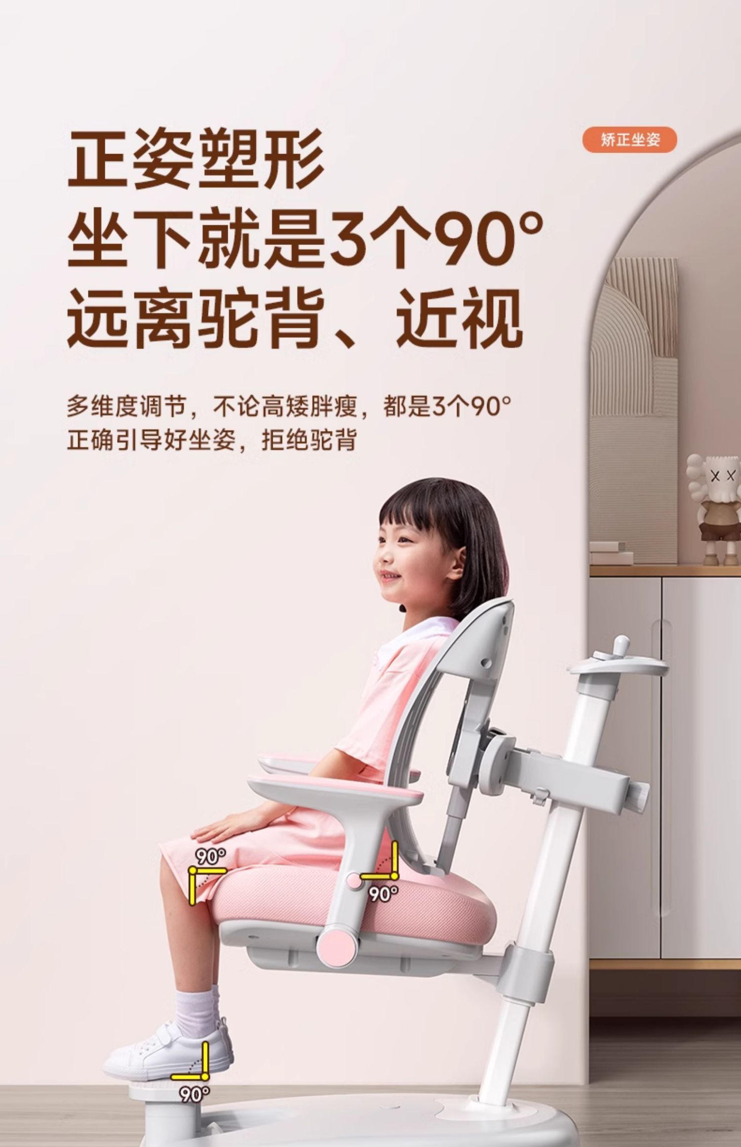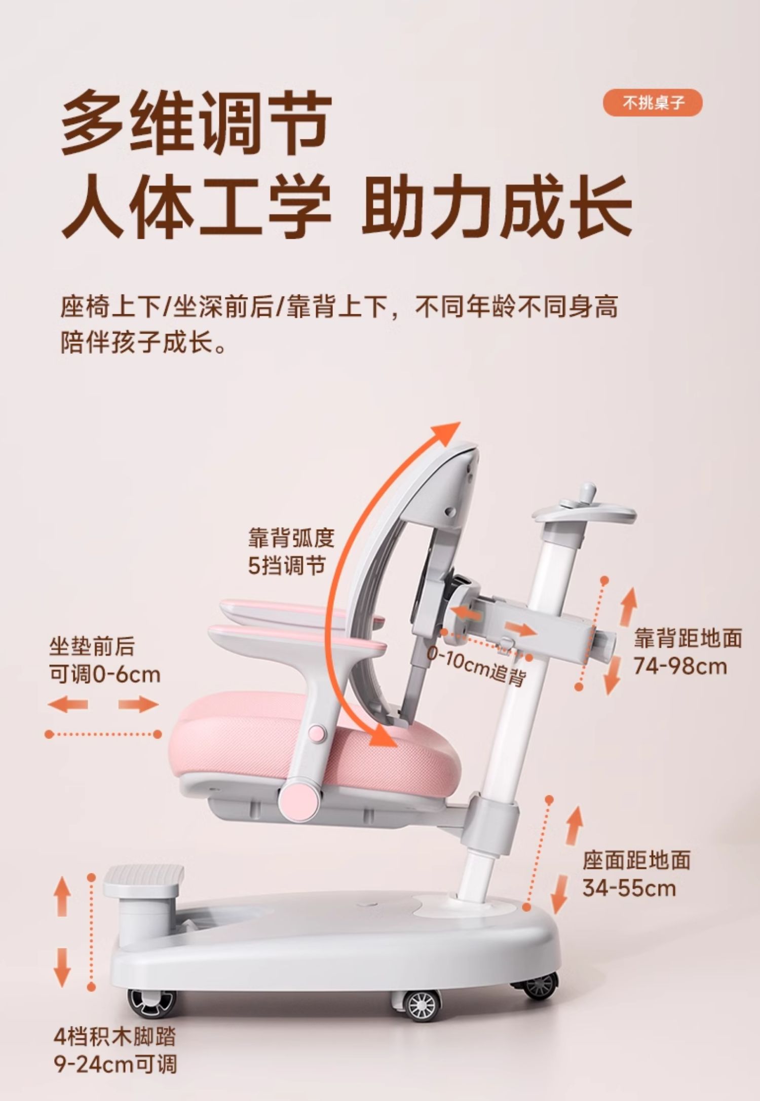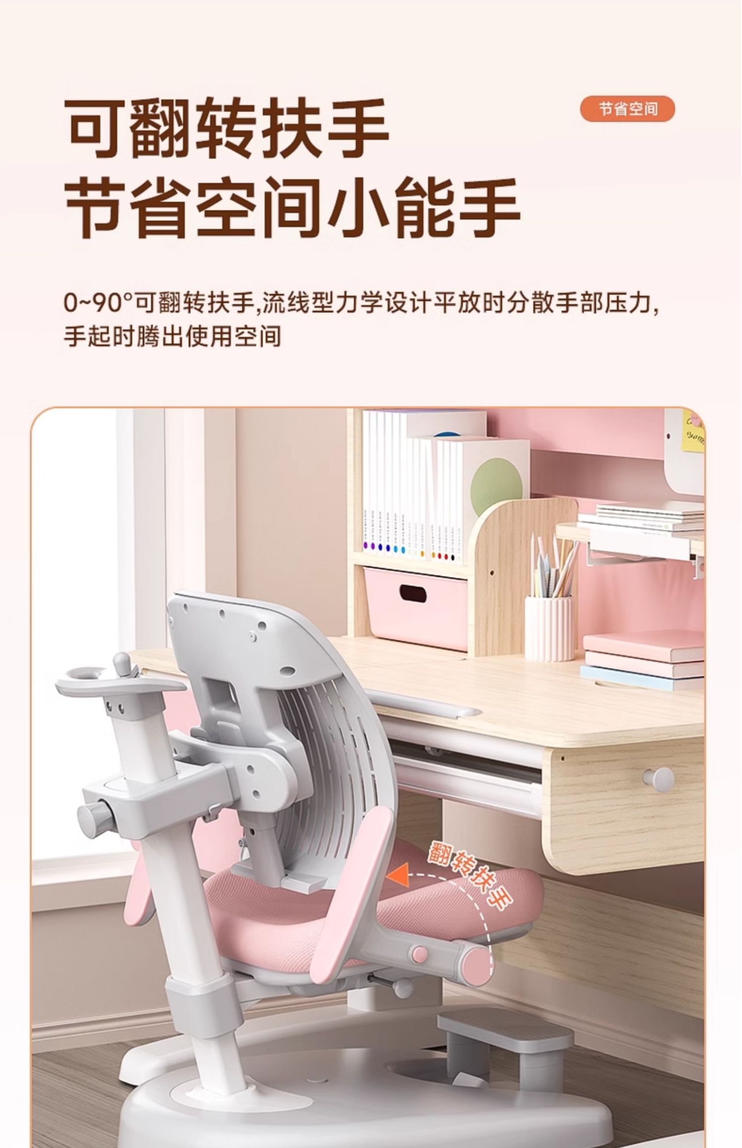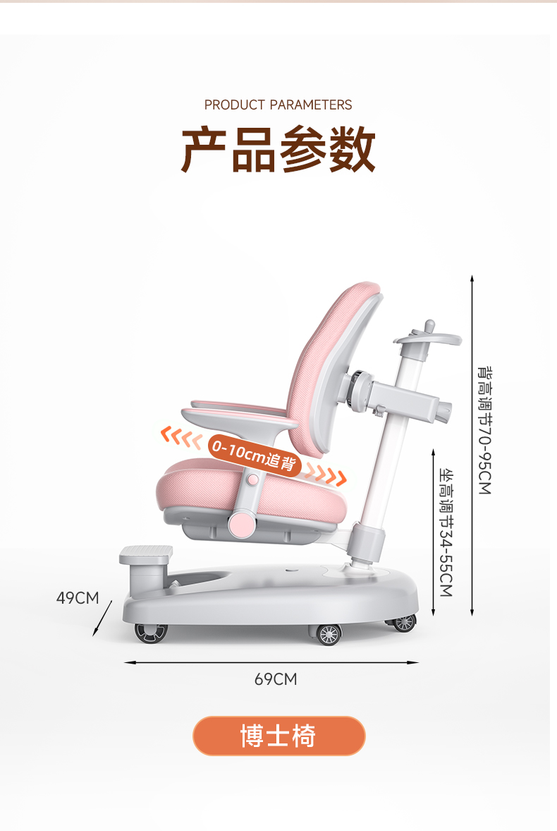chair | one-click unlock wheel/front and rear chasing back/hand lifting/positive posture pink