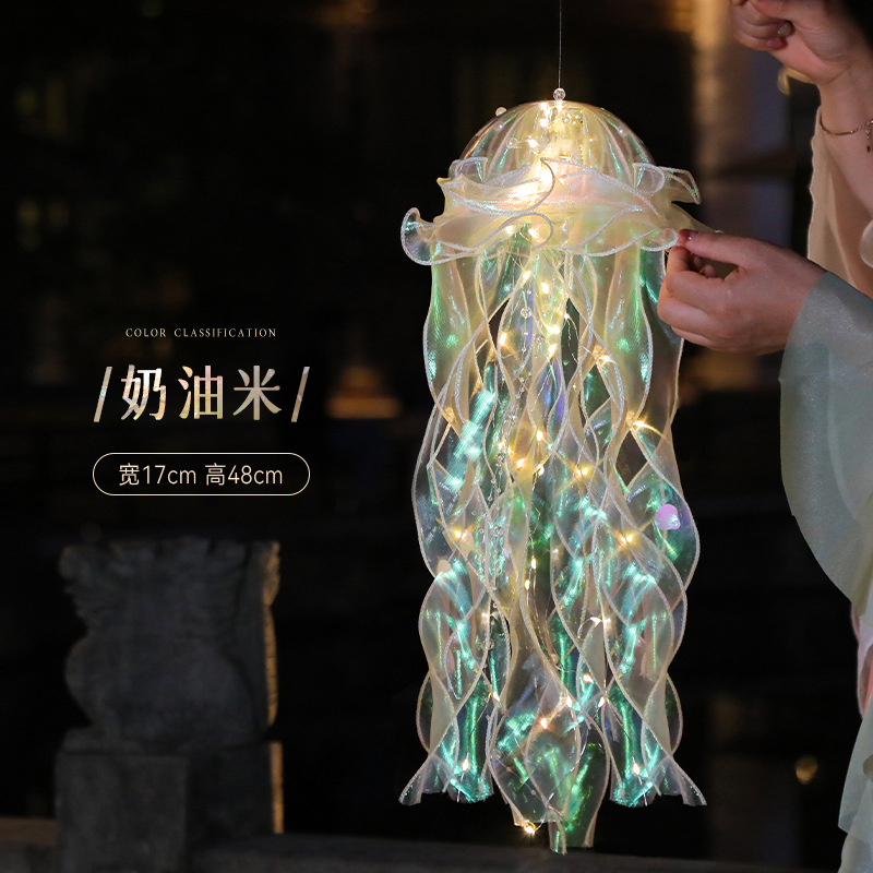 [5 sets of finished products] cream rice jellyfish lamp