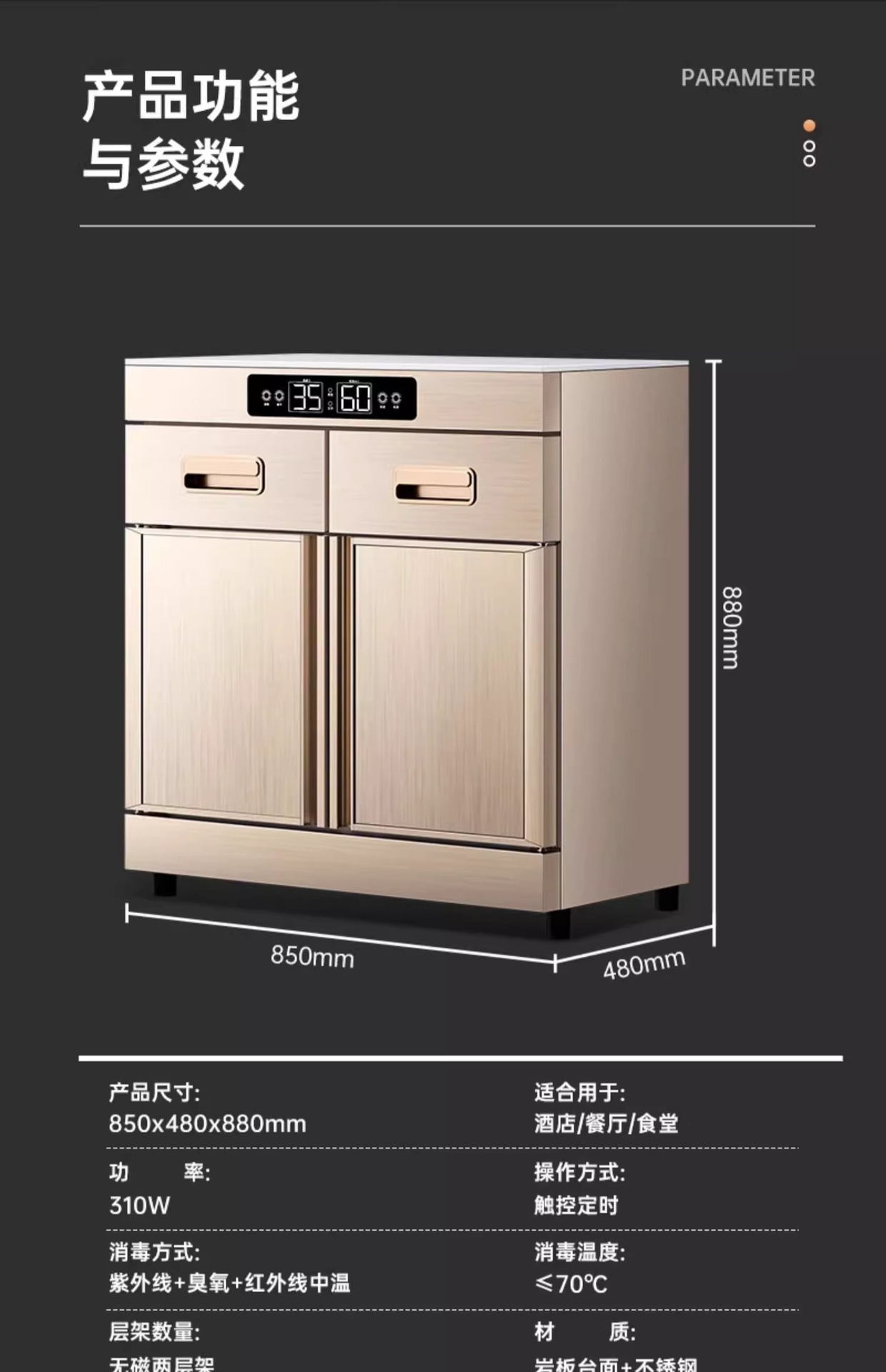 embedded 850-b3-wz double door double drawer (stone plate table touch display + non-magnetic shelf)