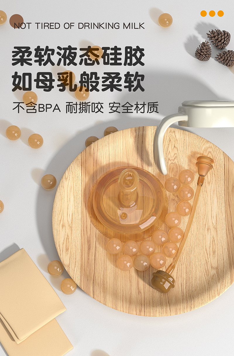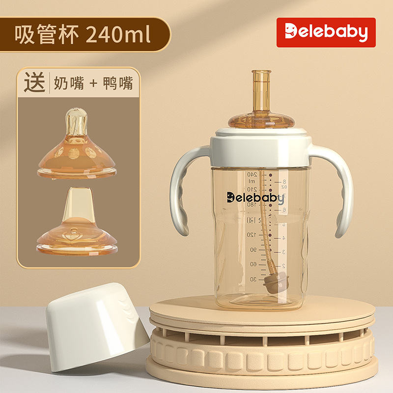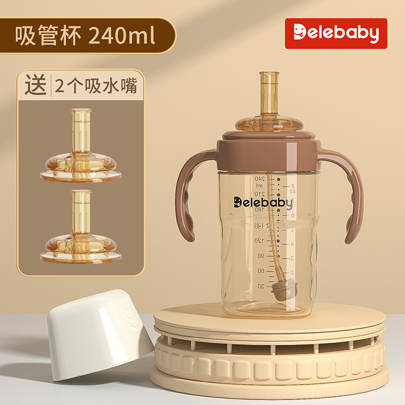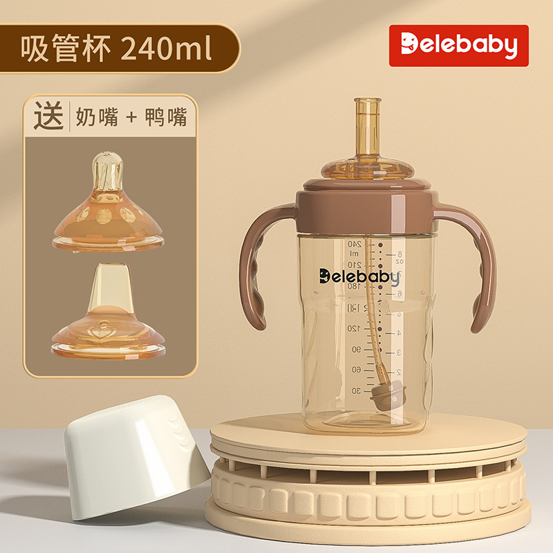 brown 240ml cup with straw + duckbill + nipple (for 3 cups)