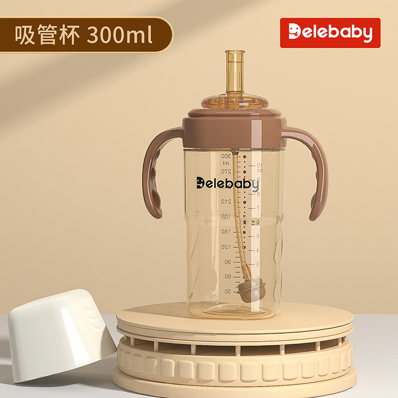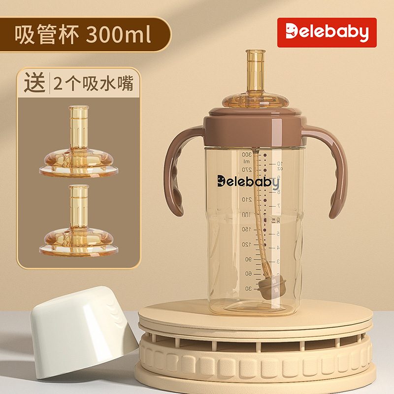 brown 300ml cup with straw + duckbill + nipple (for 3 cups)