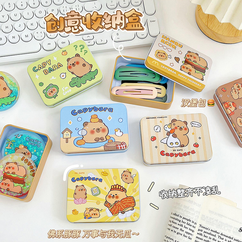 capabala small tin cute tinplate candy ornament storage box capybara gift box wedding candies box