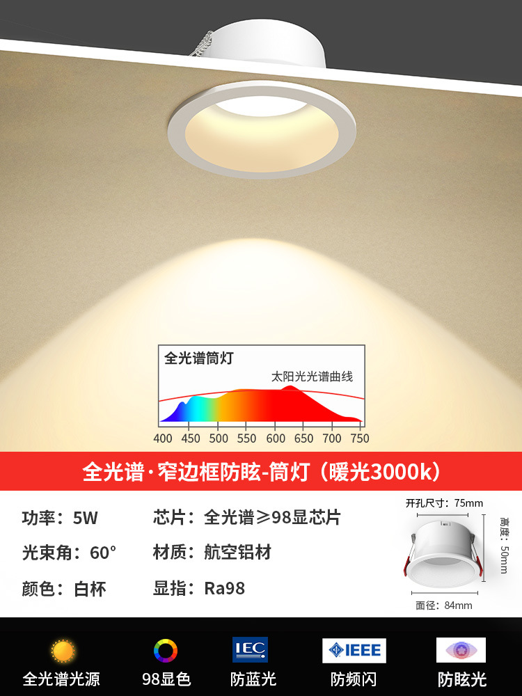 white-7w-3000k warm light ra ≥ 98(75mm hole)