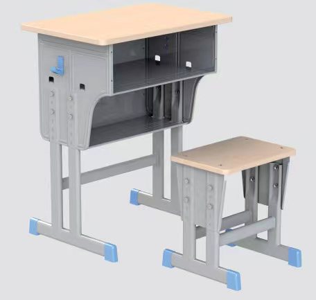 1 blue side single double column school desk and chair