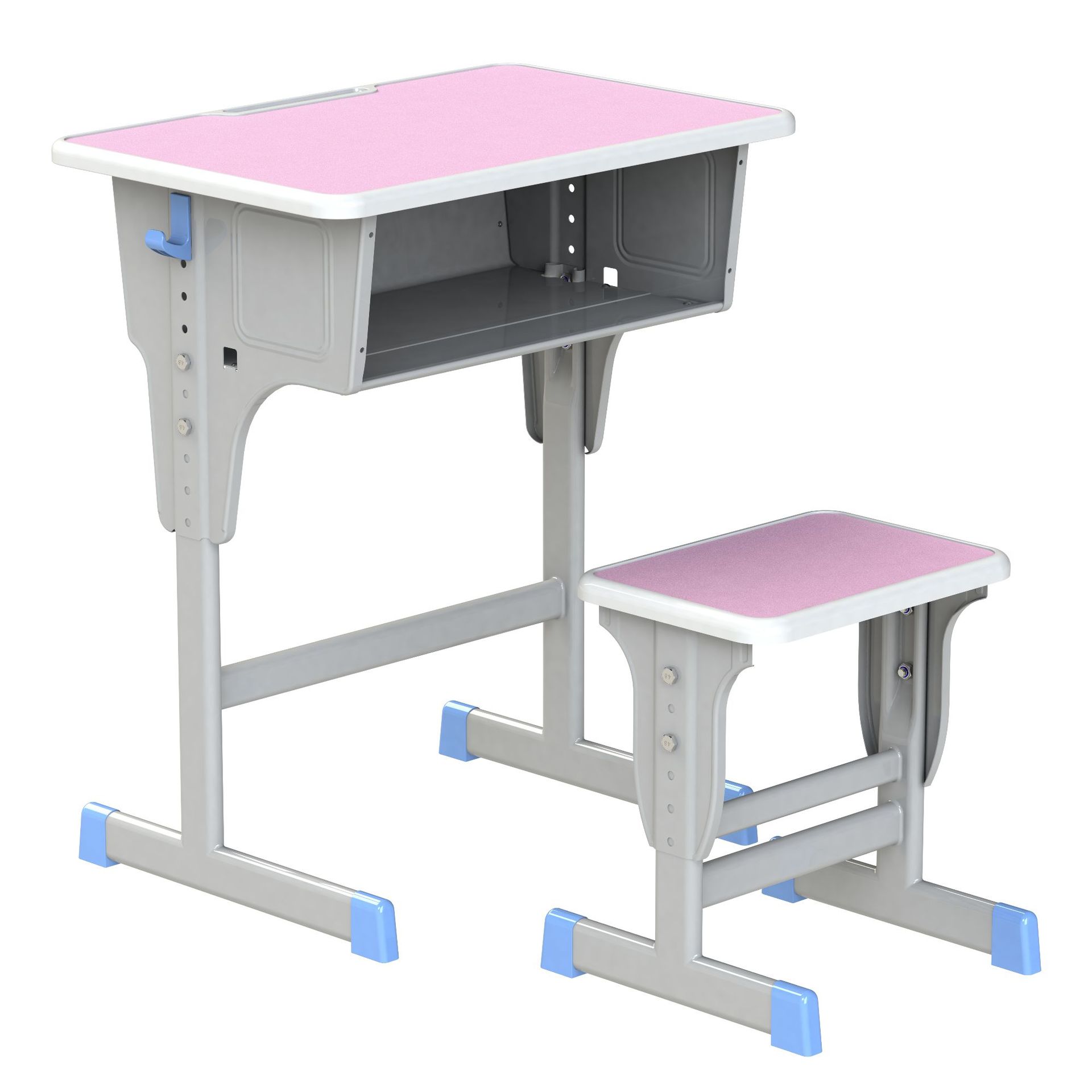 16 pink and white single single column reinforced school desk and chair