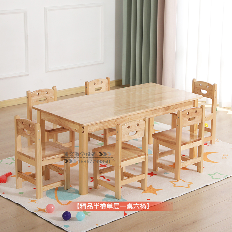 boutique half oak single-layer table one table six chairs 120*60