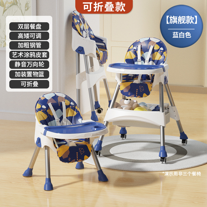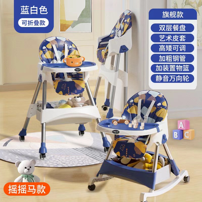 rocking chair folding (with wheels)-blue {double-layer plate + pu leather cover + storage basket}