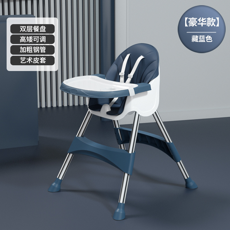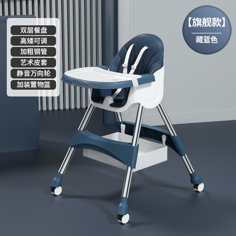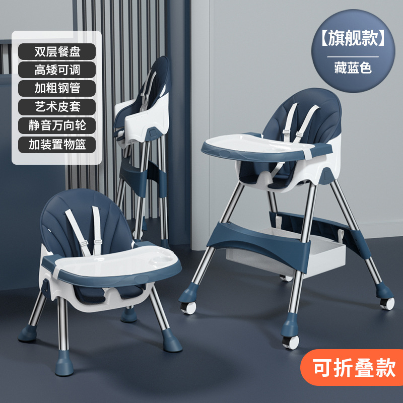 rocking chair folding (with wheels)-dark blue {double-layer plate + pu leather cover + storage basket}
