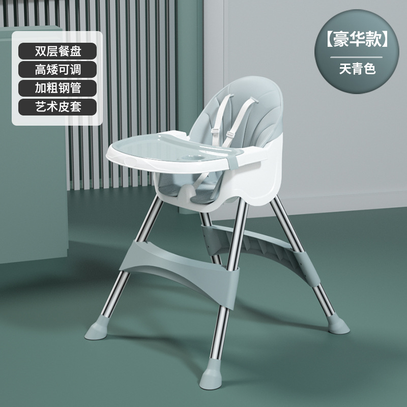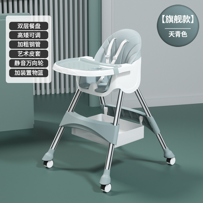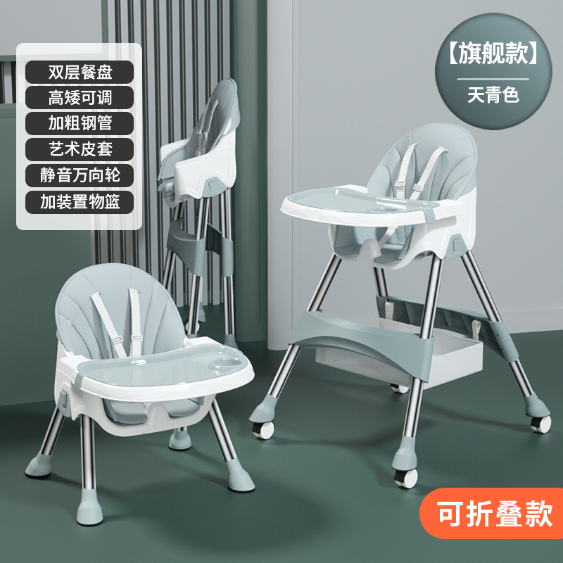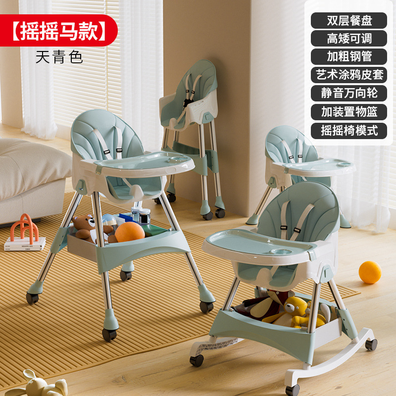 rocking chair folding (with wheels)-azure {double-layer plate + pu leather cover + storage basket}