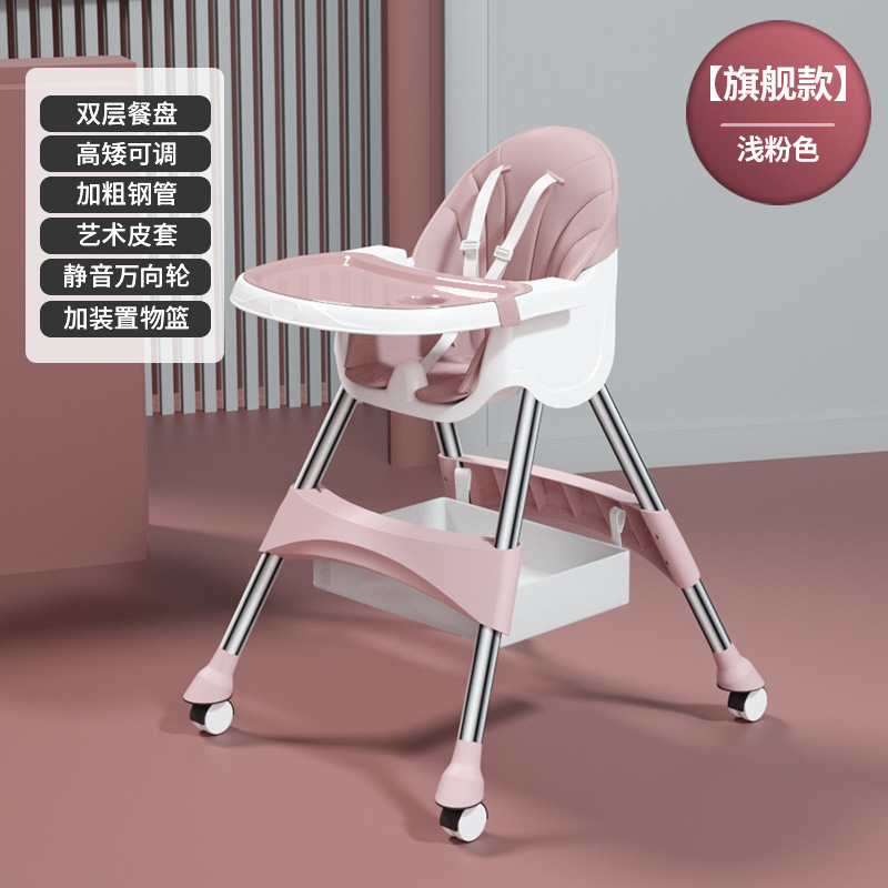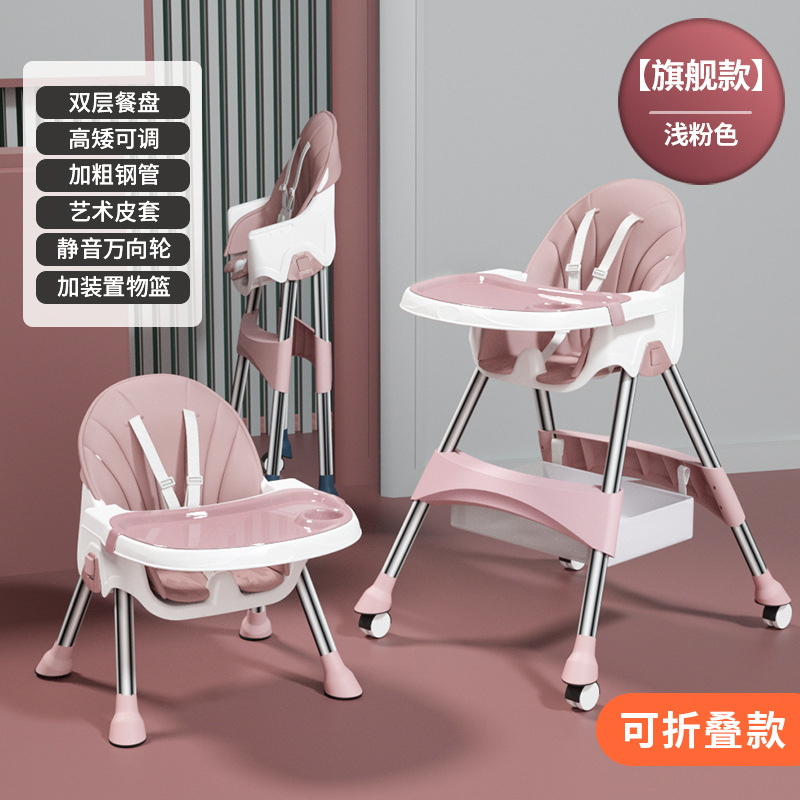 rocking chair folding (with wheels)-rose pink {double-layer plate + pu leather cover + storage basket}
