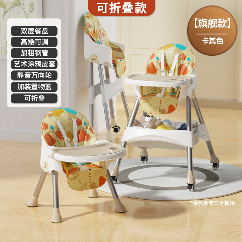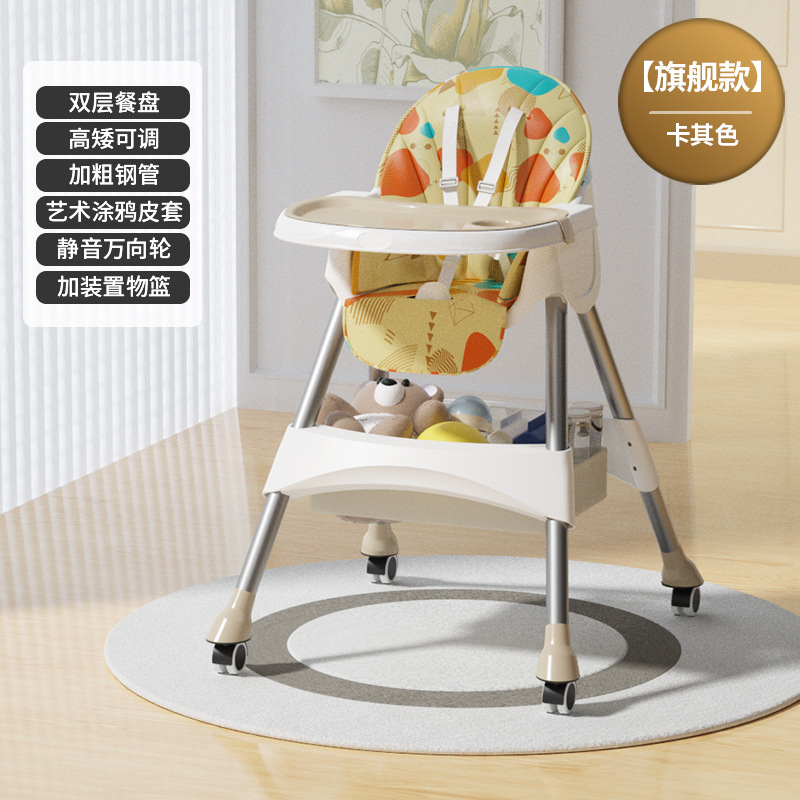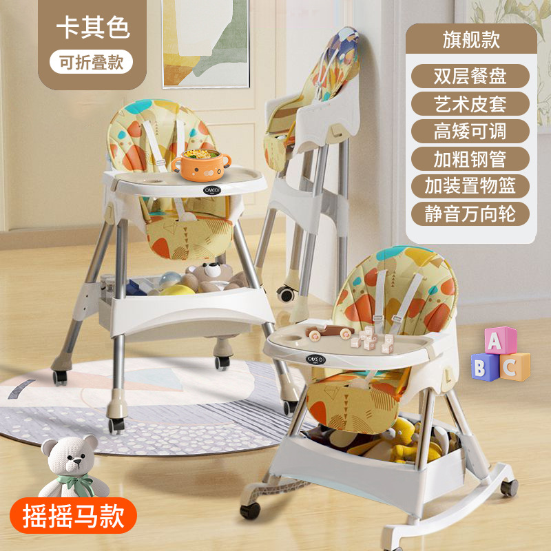 rocking chair folding (with wheels)-khaki {double-layer plate + pu leather cover + storage basket}
