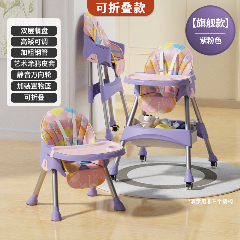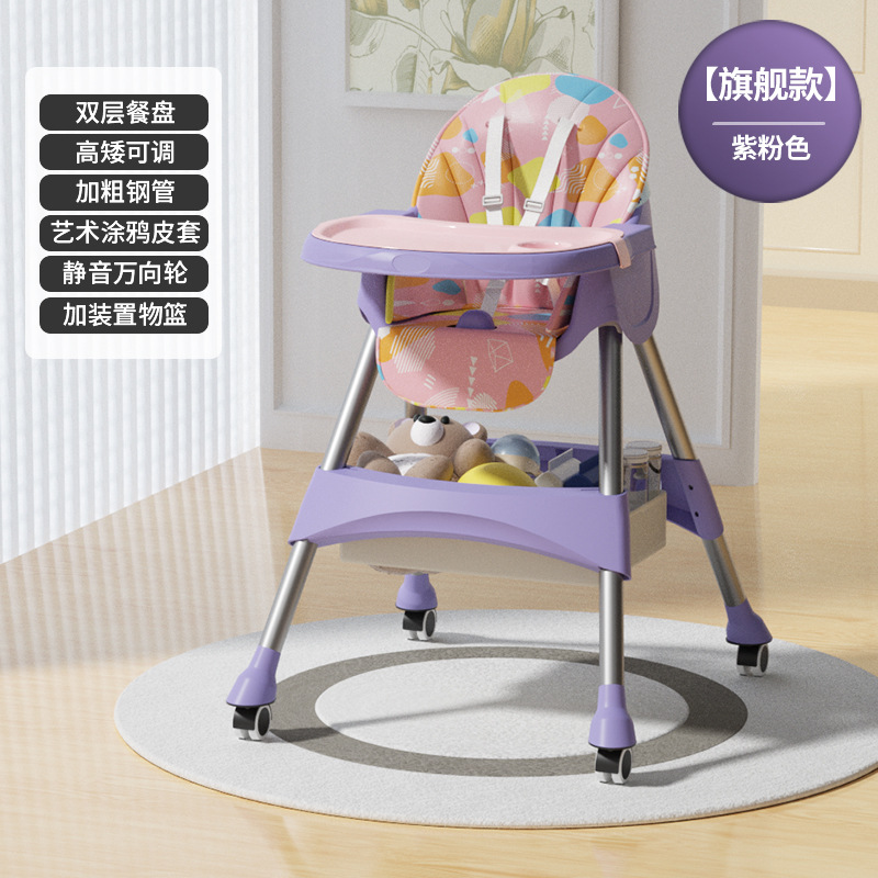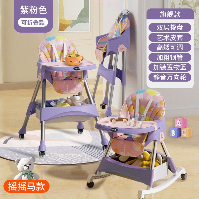 rocking chair folding (with wheels)-purple pink {double-layer plate + pu leather cover + storage basket}