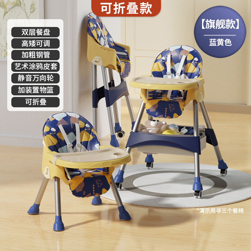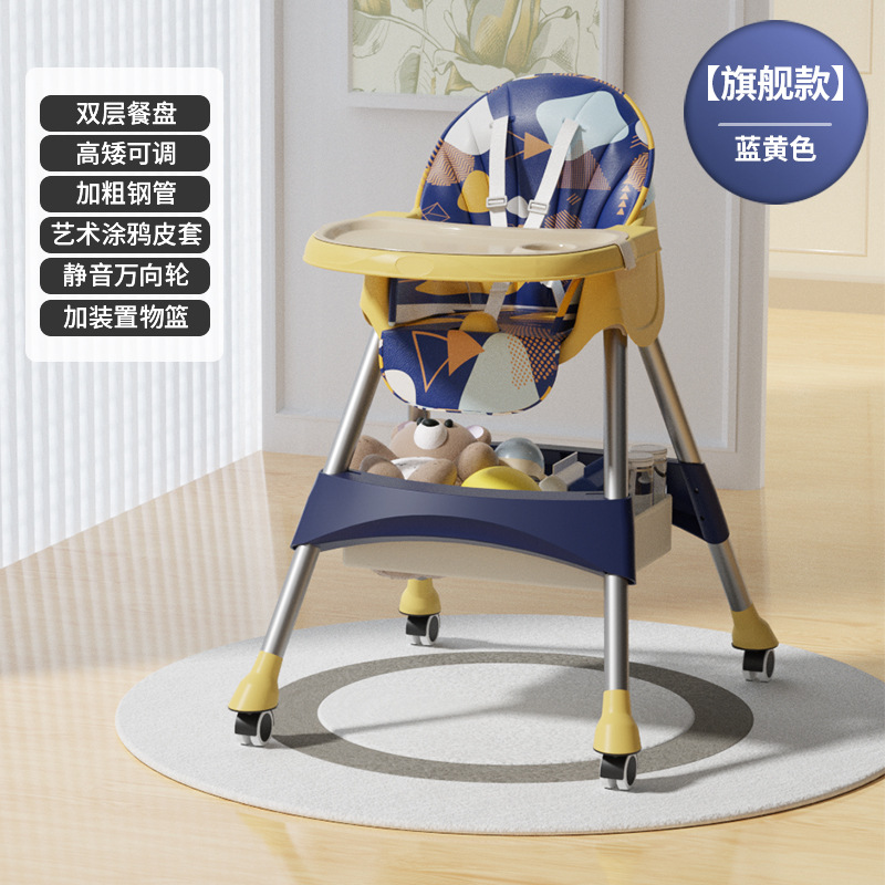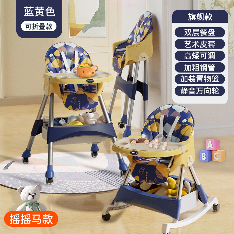 rocking chair folding (with wheels)-yellow blue {double-layer plate + pu leather cover + storage basket}