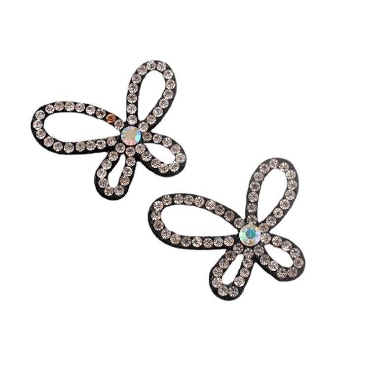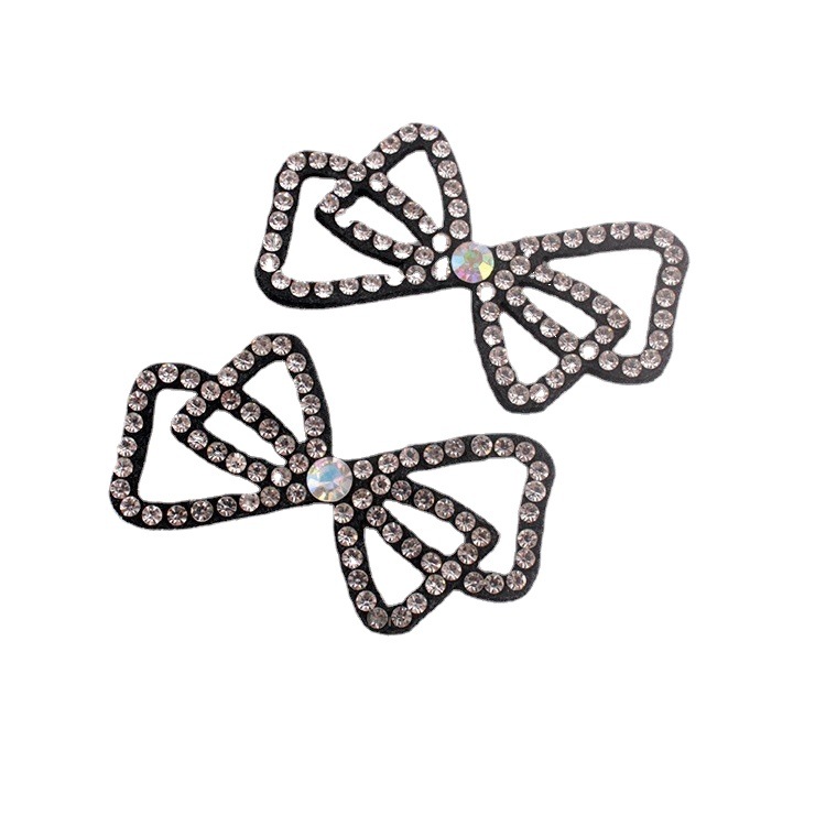 customized electroplated glass colored glaze rhinestone shoe ornament barrettes decorative accessories black non-woven rhinestone bow