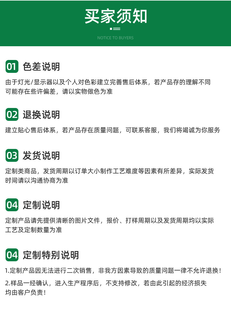 Small business operation, low profit margin, if the sold products have damage, please take photos and contact customer service for after-sales processing. Our store does not support returns for any reason such as poor quality or unsellable. Our products are not crafts, and those who pursue perfect quality should be cautious when placing an order. Please note that the 7-day no-reason return policy is only applicable to individual customers who purchase one product. Multiple wholesale and custom sales customers do not support a 7-day no-reason return policy. If you have any questions, you can contact the manager's WeChat to discuss the handling. Thank you for your cooperation. For invoices and custom orders, please contact the manager's WeChat.
